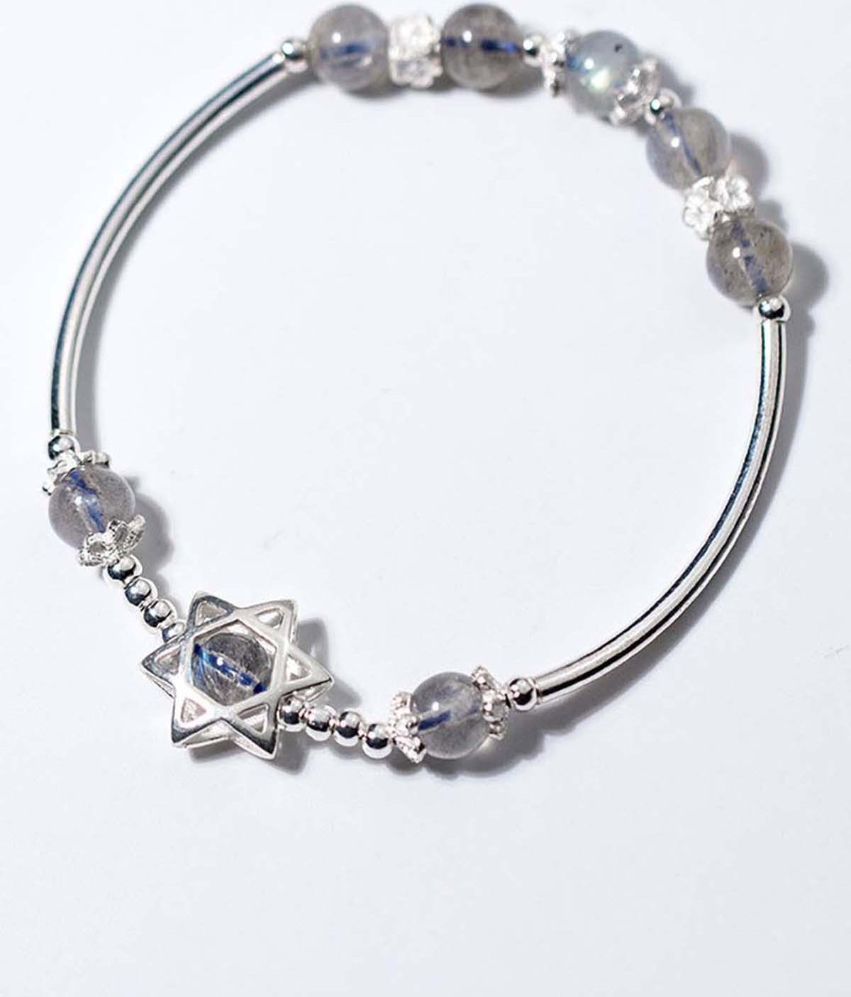 VÒNG TAY ĐÁ XÀ CỪ ÁNH XANH CHARM NGÔI SAO 6 CÁNH :