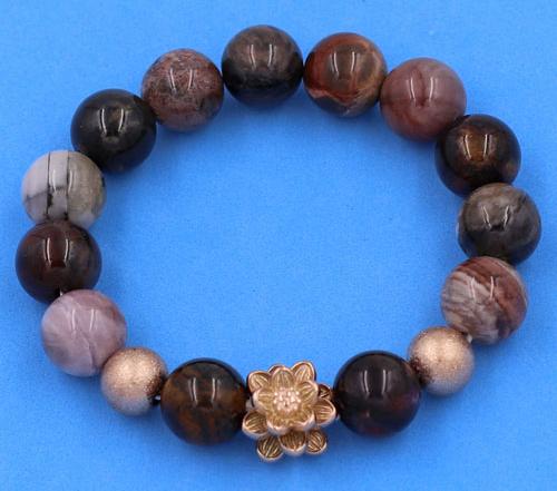 ✨Vòng tay Gỗ Hóa Thạch size 12 ly charm Hoa Sen vàng hồng VGHTHSHBH12 - hợp tất cả các mệnh