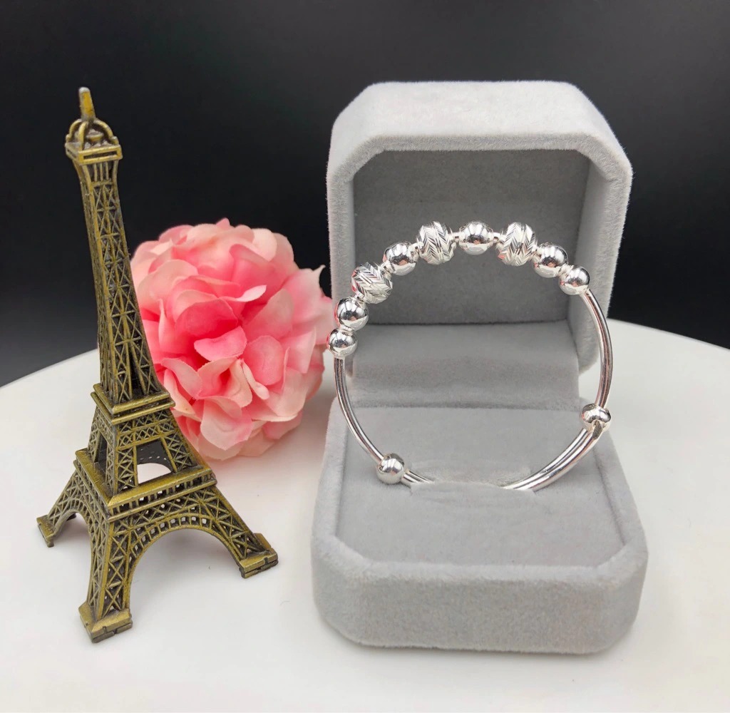 Vòng Tay Lắc Tay Cho Bé Bạc Ta Hình Bi Phay Free Size BẠC HIỂU MINH LTE530