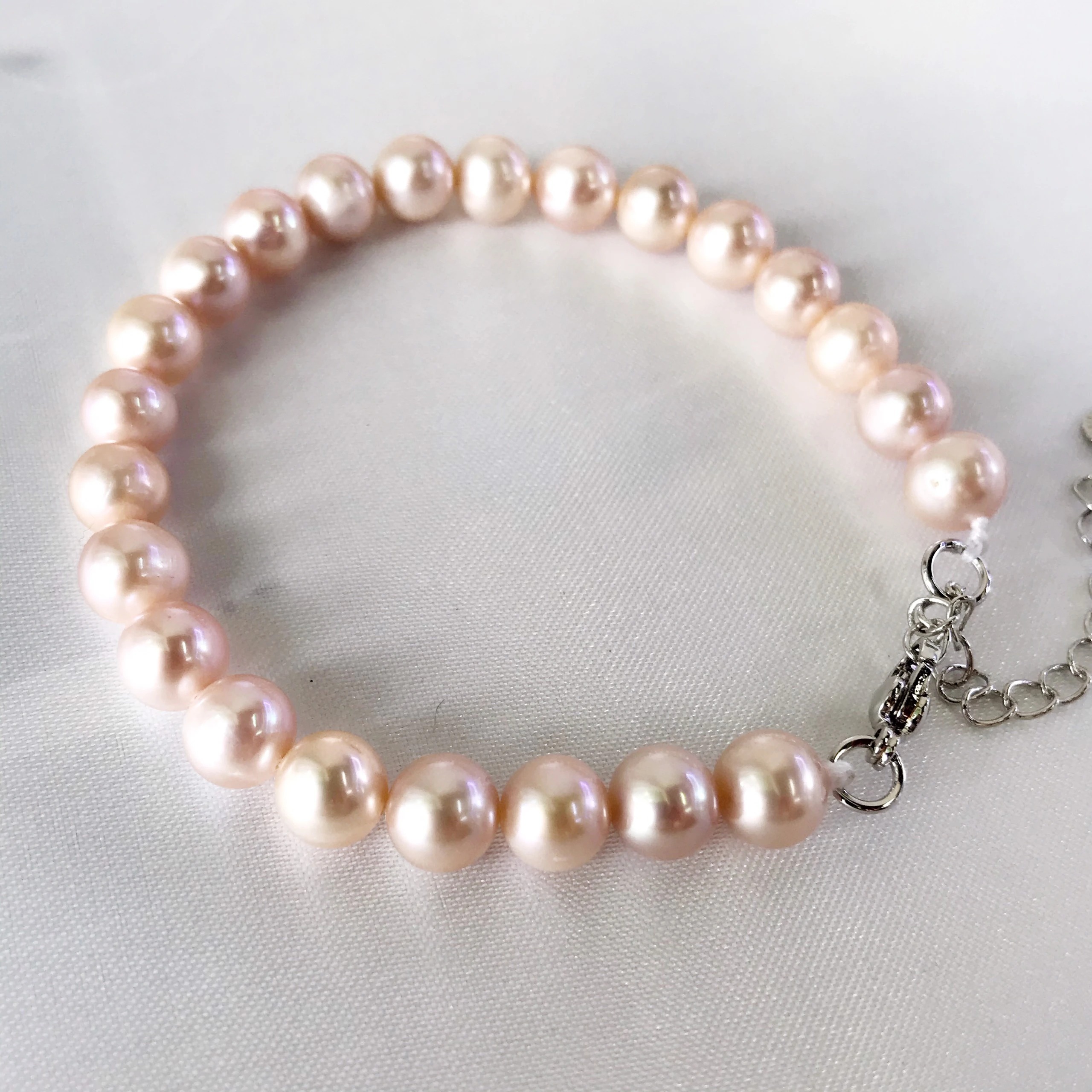 ✨Vòng Tay Lắc Tay Ngọc Trai Nuôi 6-7ly Hạt Hồng Nhạt Bóng Đẹp Tự Nhiên LTU569 Bạc Hiểu Minh