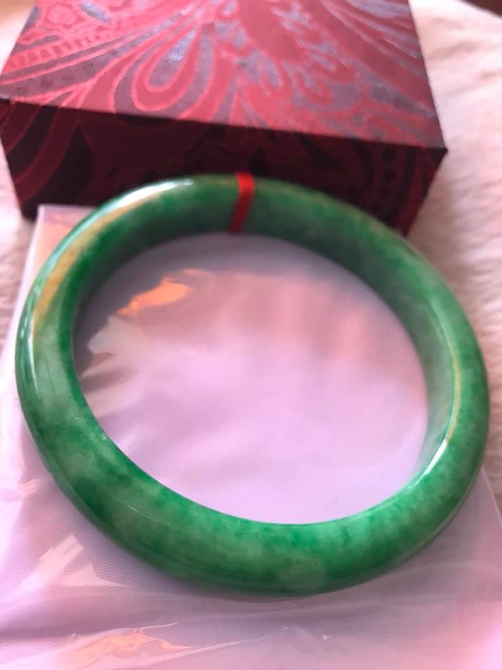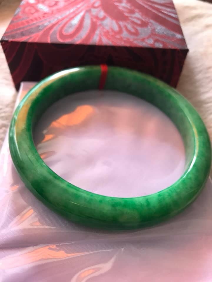 💌Vòng Tay nữ Cẩm Thạch Lý Nở 53mm x Dầy 7,2mm Màu Xanh lá Tươi bóng đều đẹp hợp Nữ mệnh Mộc Hỏa ạ