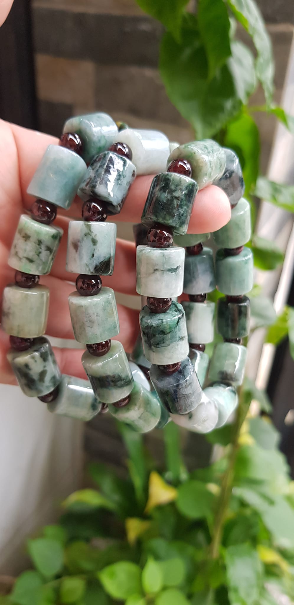 ✨Vòng tay Nam kiểu đá Cẩm thạch tự nhiên xanh ngọt phối bi tròn đậm đẹp Size hạt 12mm dài 14mm hợp nam mệnh thủy mộc hỏa đeo ạ