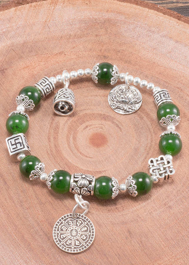 • Vòng tay ngọc bích phối charm hoa sen (10mm) có tác dụng mang đến vận may, giúp người đeo tránh được những rủi ro, các thế lực tà ma và sự nguy hiểm.