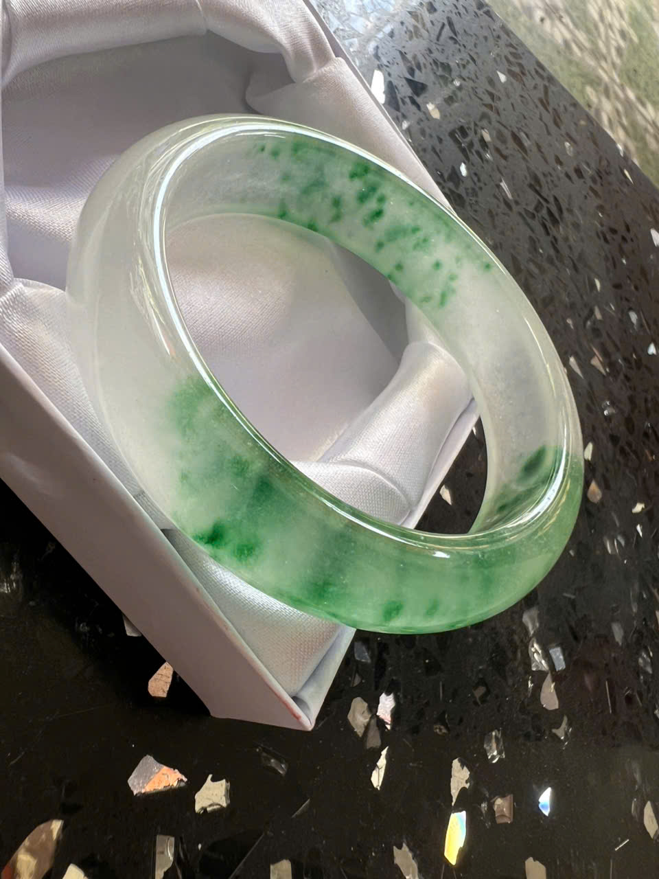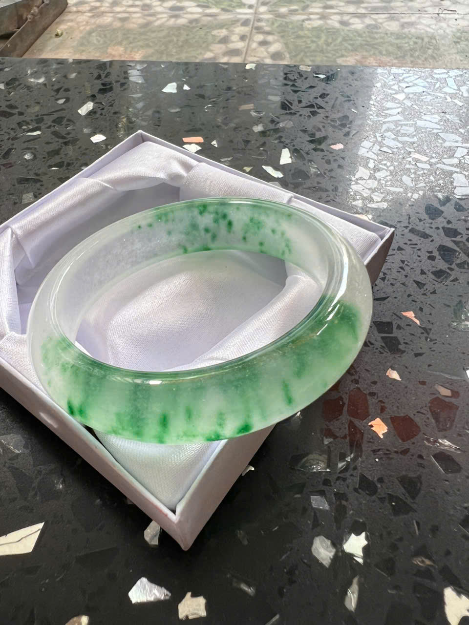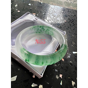 Vòng tay Nữ Đá Cẩm Thạch mới TR Lý 57 mm x cọng 7,5mm Màu Xanh lý tươi trắng 2 bên đều vòng đẹp Nữ 55kg - 64kg đeo đẹp món quà tặng chính mình