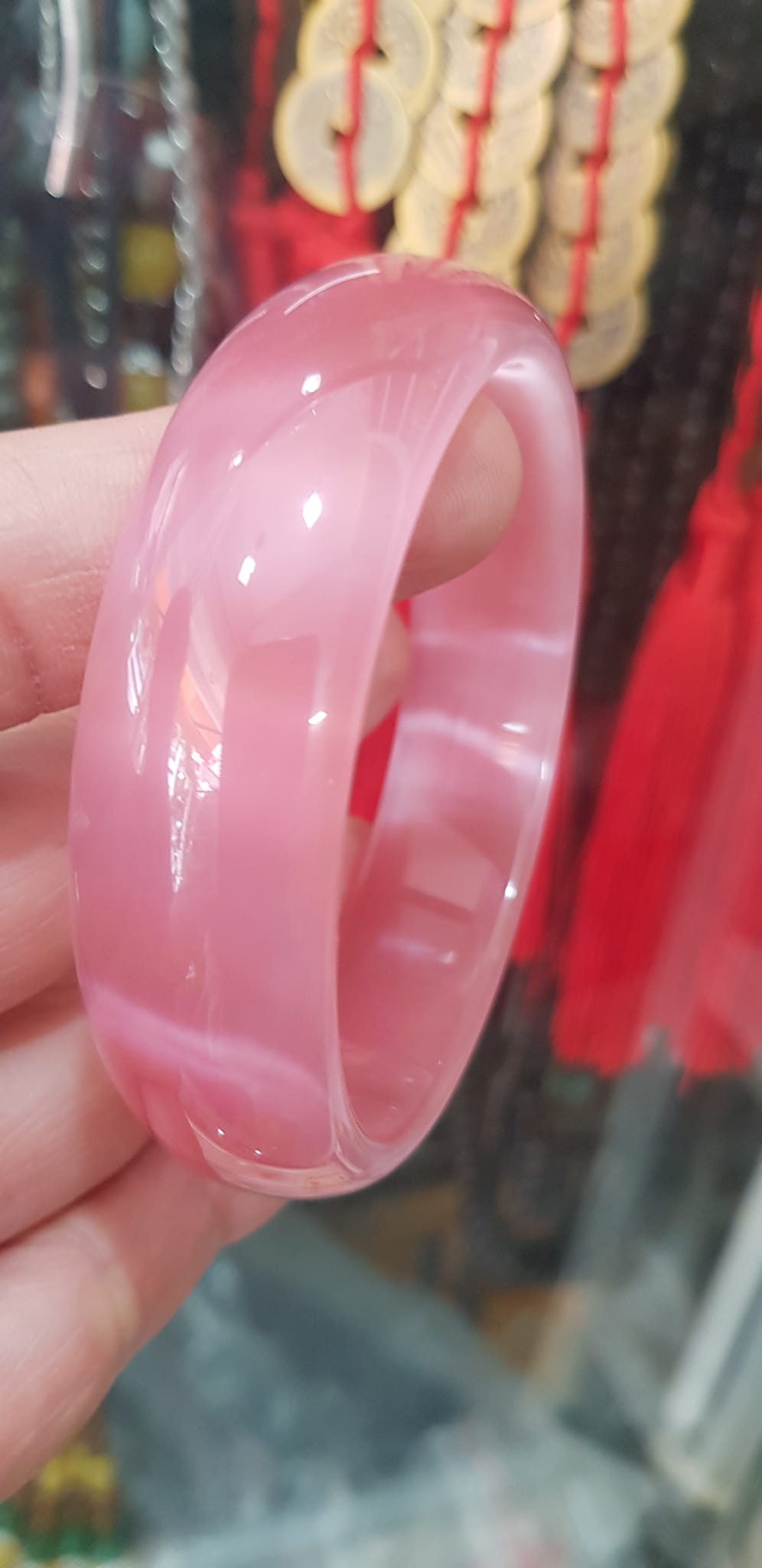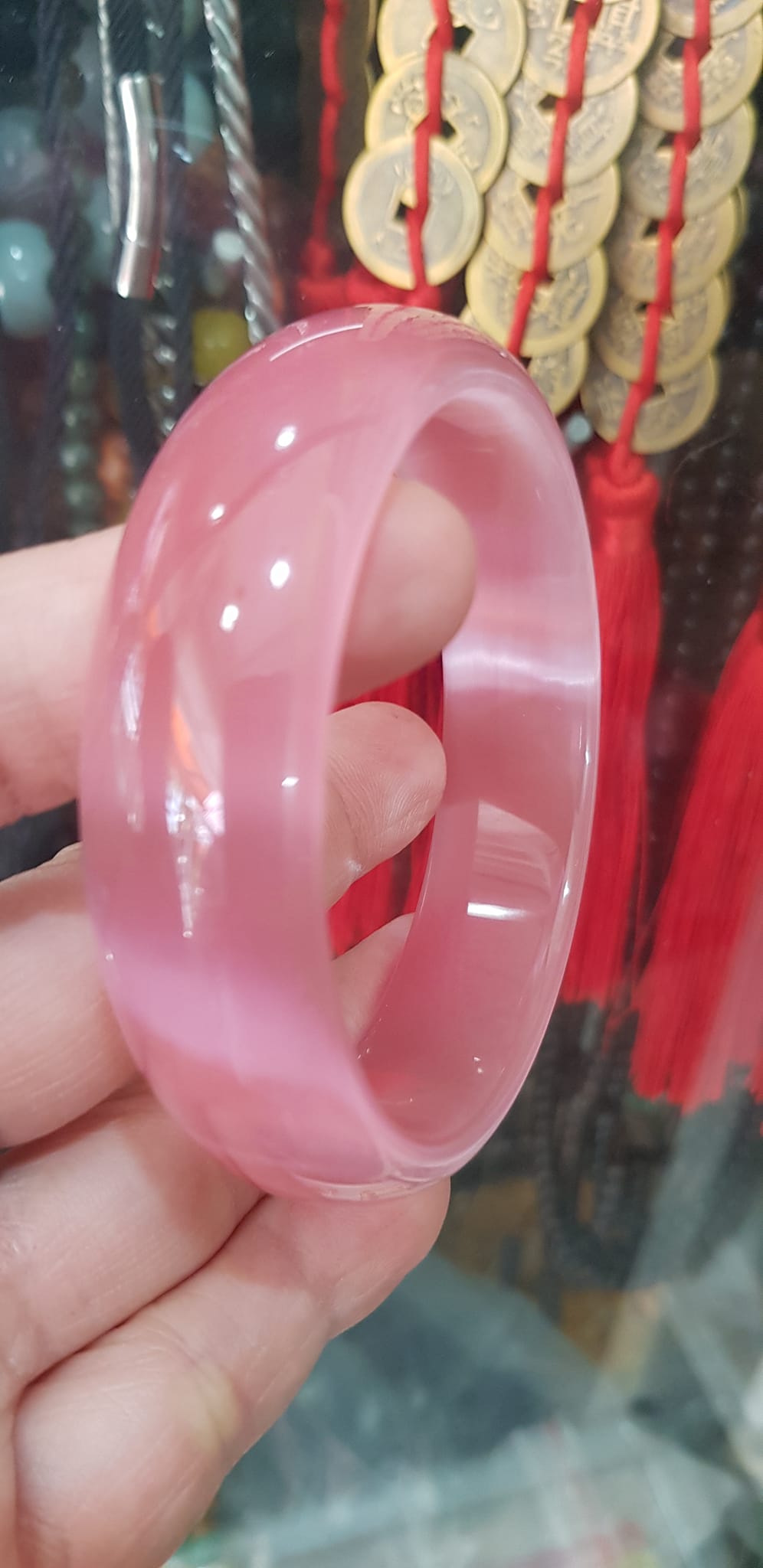 1. Tên gọi: Vòng tay ngọc màu hồng phấn siêu độc lạ, ngọc của VN, mới khai thác được, nên chế tác luôn và được khách đón nhận vì màu đá tự nhiên rất nhẹ