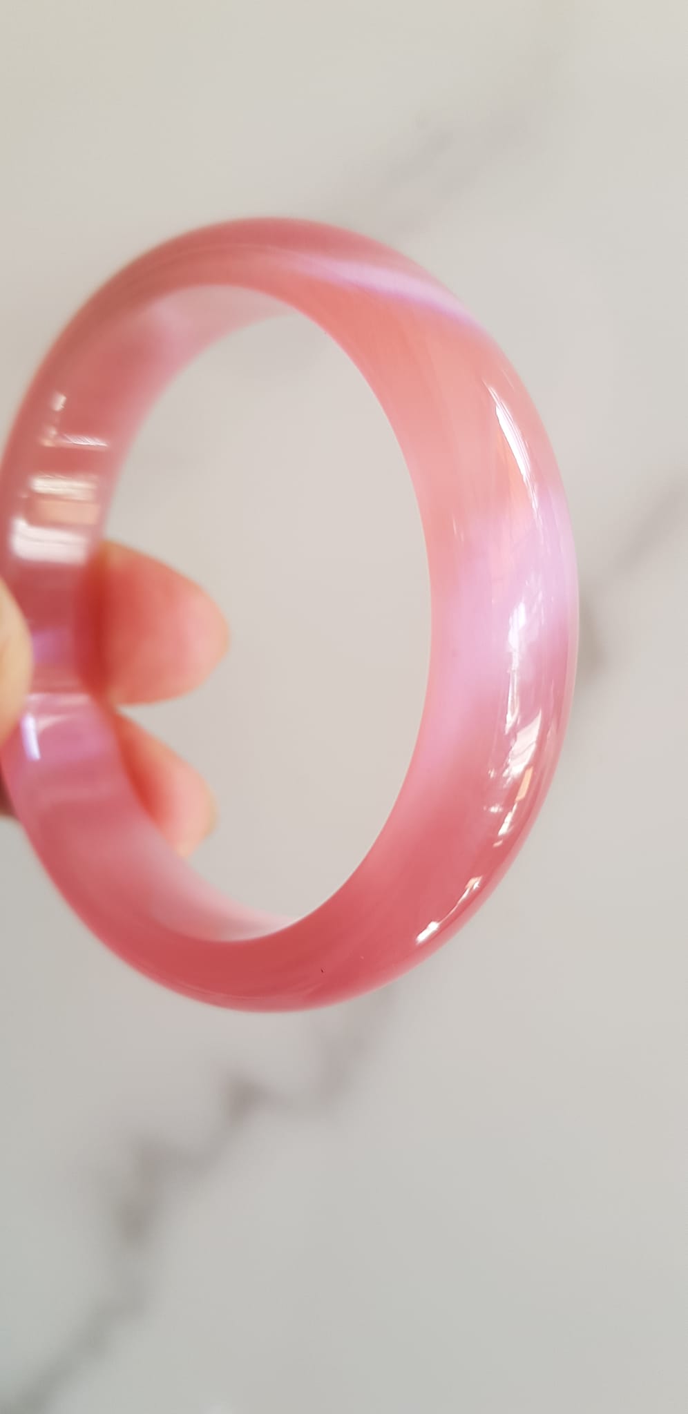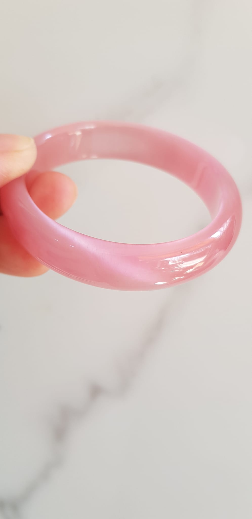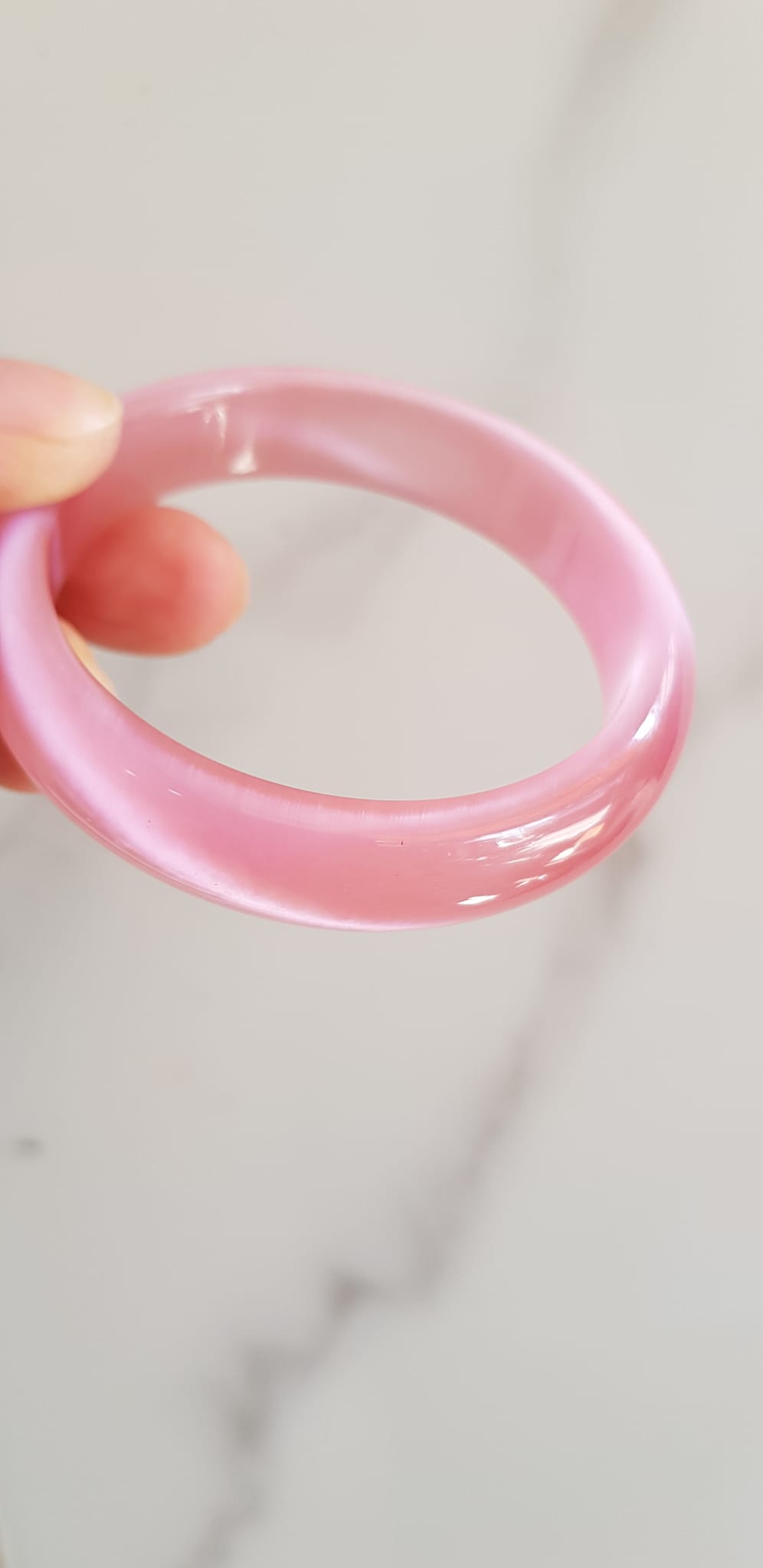 Vòng tay nữ đá mắt mèo hồng bản hẹ mới Ni 53mm x cao 13mm x dầy 7mm Nữ 50kg - 57kg đeo Vòng màu hồng hồng nhẹ xinh tươi đẹp rẻ lắm chuẩn hợp nữ mệnh hỏa mệnh thổ ạ