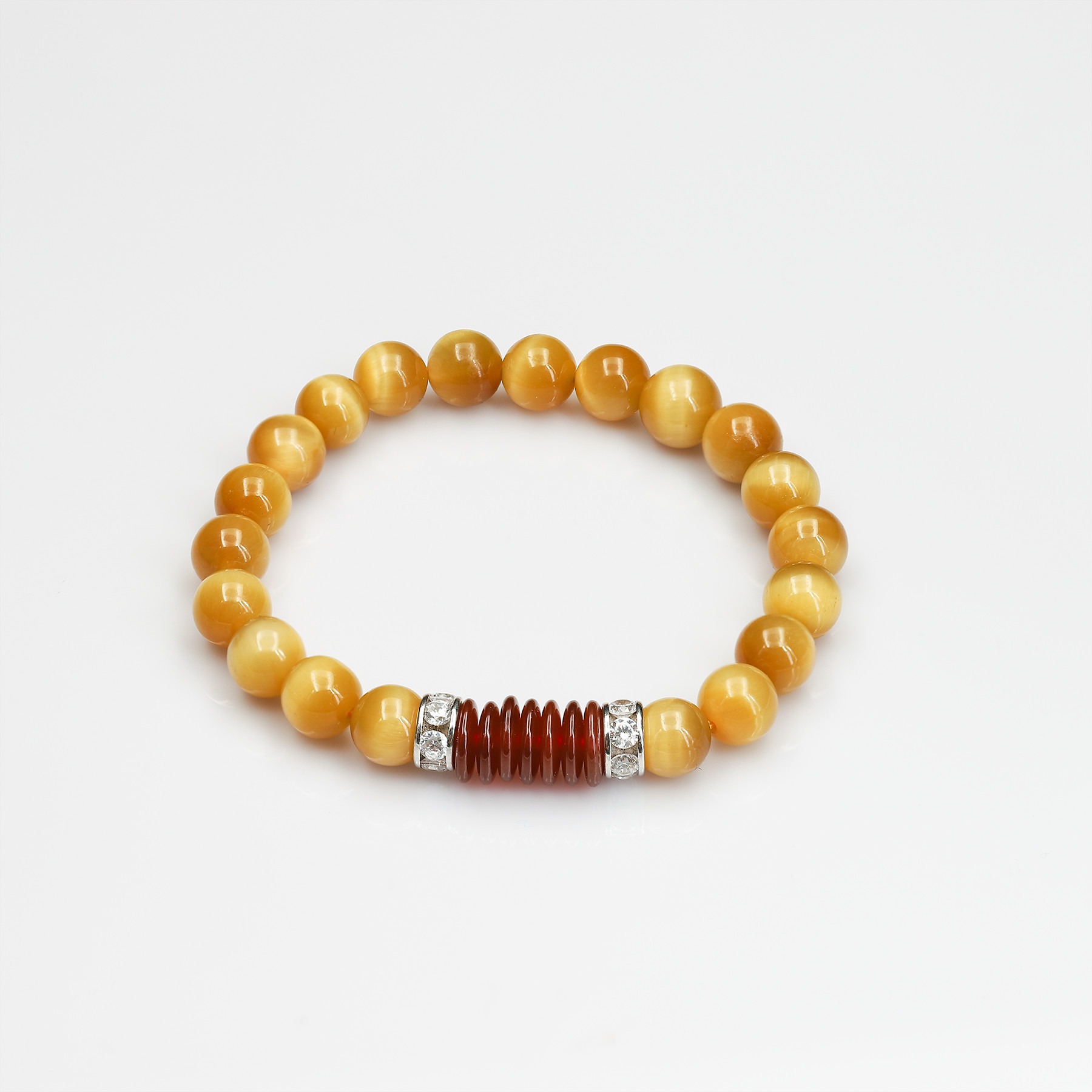 Vòng tay phong thuỷ đá Mắt Hổ Vàng Tâm 8 ly mix Khoen Mã Não by Anqlo là sản phẩm được chế tác tinh xảo, có độ hoàn thiện cao bởi các nghệ nhân lâu năm trong nghề.