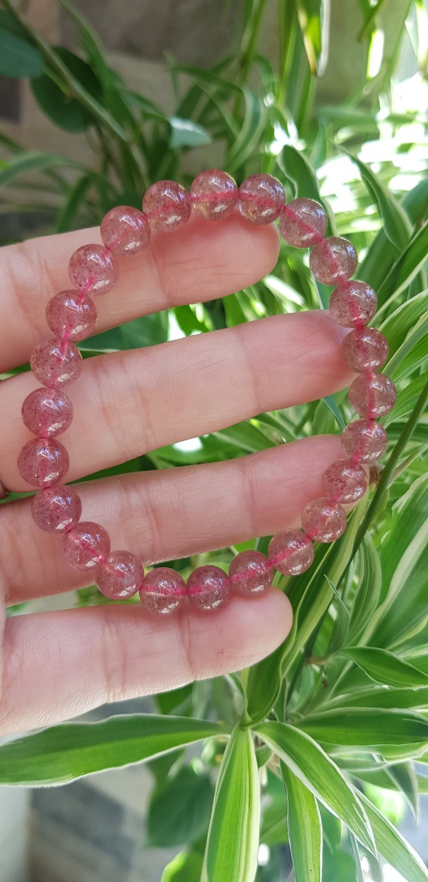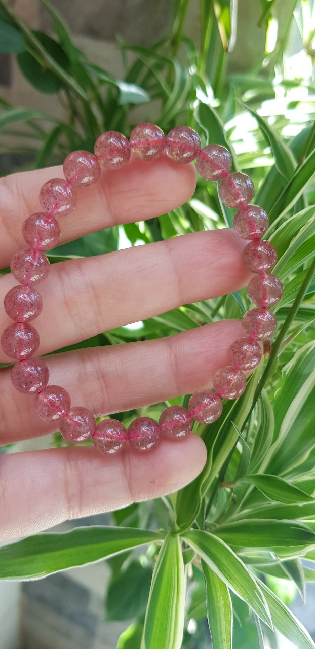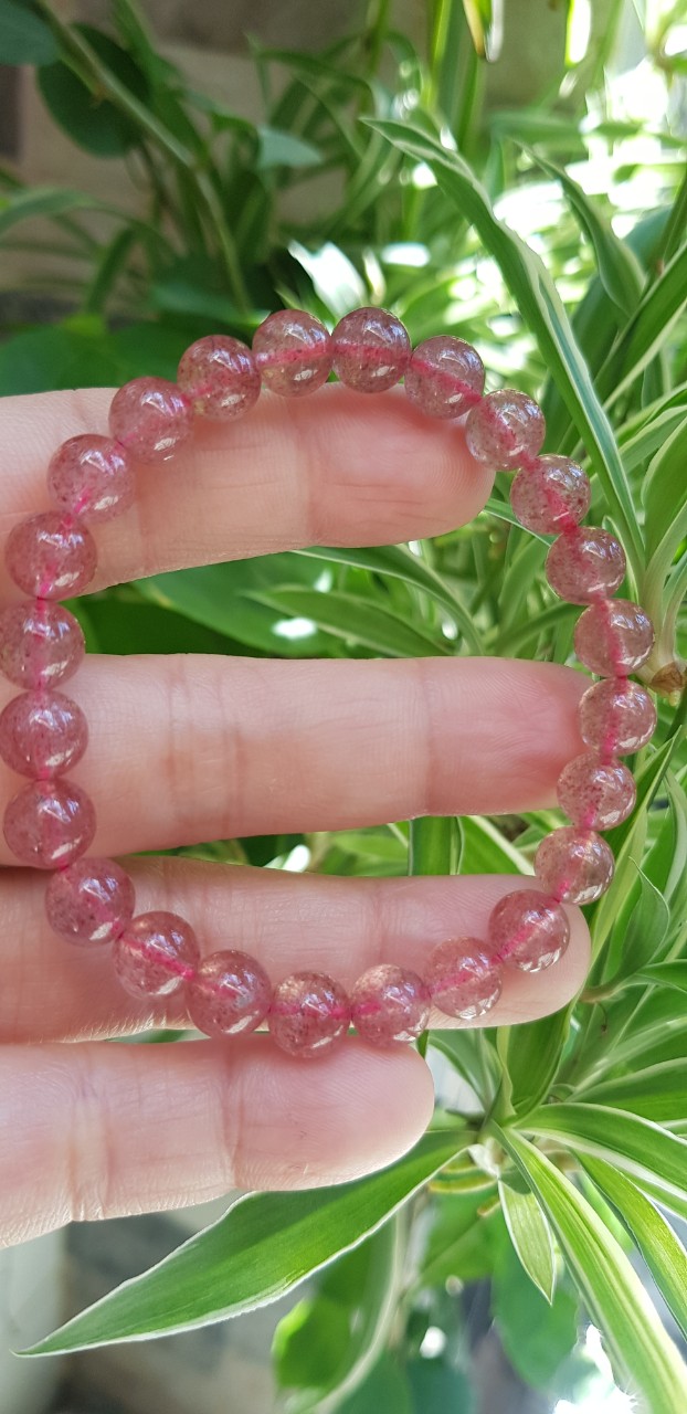 Vòng tay phong thủy đá THẠCH ANH DÂU HỒNG size hạt 8mm tự nhiên là sản phẩm phong thủy với chất liệu Thạch Anh giúp mang lại may mắn, tốt cho sức khỏe và công việc cho người đeo.
