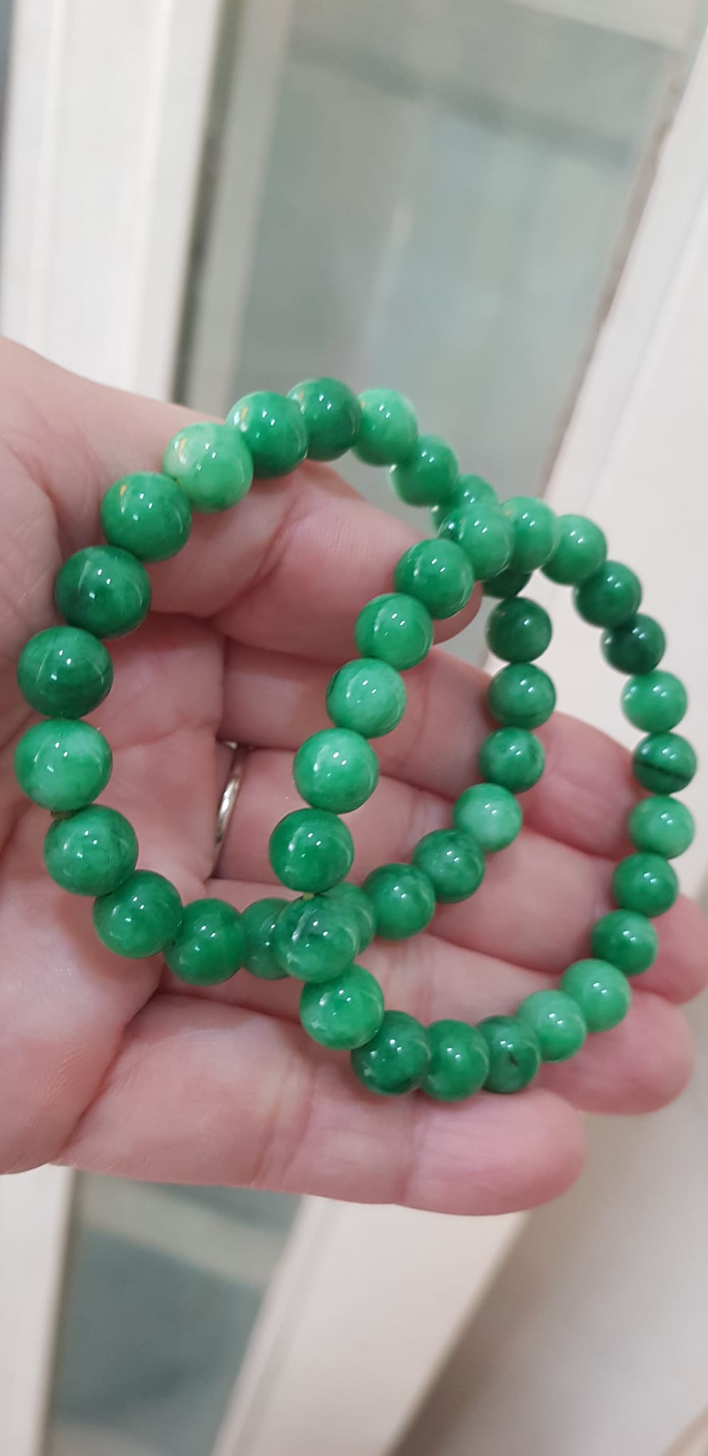 Vòng tay phong thủy Nữ đá cẩm thạch xanh tươi size hạt 8mm Vòng màu xanh lá tươi đẹp nữ mệnh mộc hỏa thủy ạ