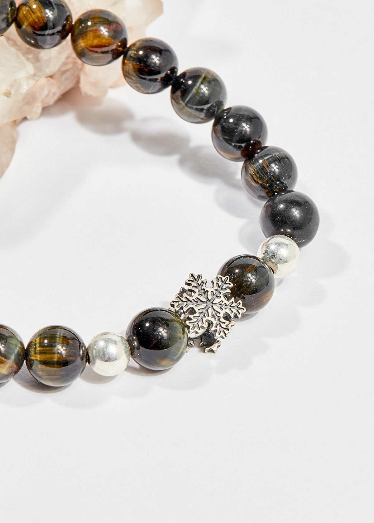 VÒNG TAY ĐÁ MẮT HỔ XANH ĐEN PHỐI CHARM: Đá Mắt Hổ có tên khoa học là Tiger Eye, là một loại tinh thể biến chất có màu sắc từ vàng, nâu đỏ đến xanh