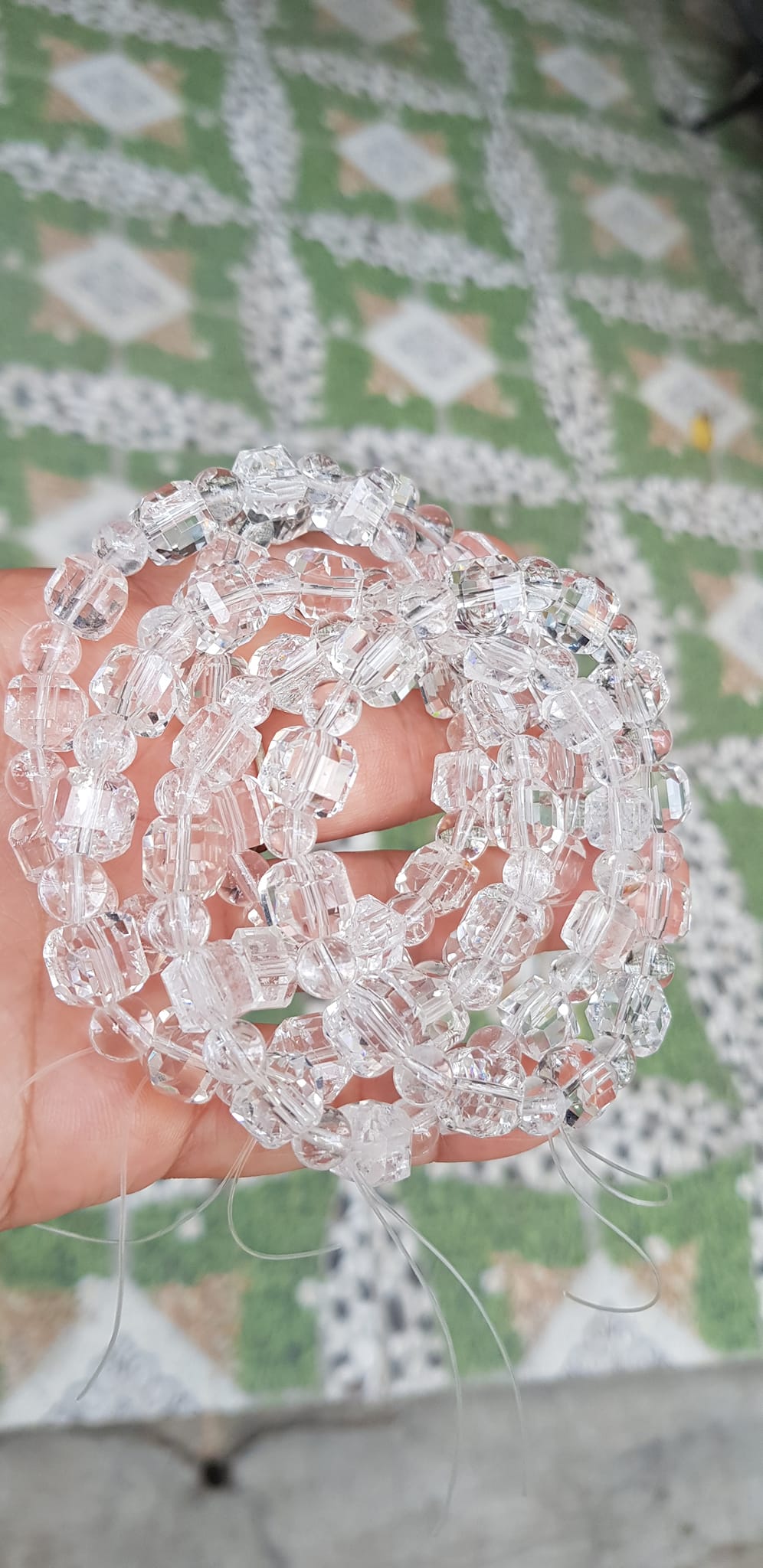 ✨ Vòng tay phong thuỷ nữ đá thạch anh trắng trong tự nhiên kiểu vuông giác tròn Size hạt vuông 10mm hạt tròn nhỏ 6mm Nữ mệnh kim mệnh Thủy đeo hợp may mắn tốt sức khoẻ công việc ạ