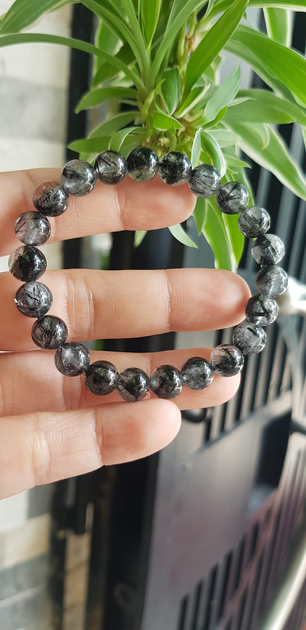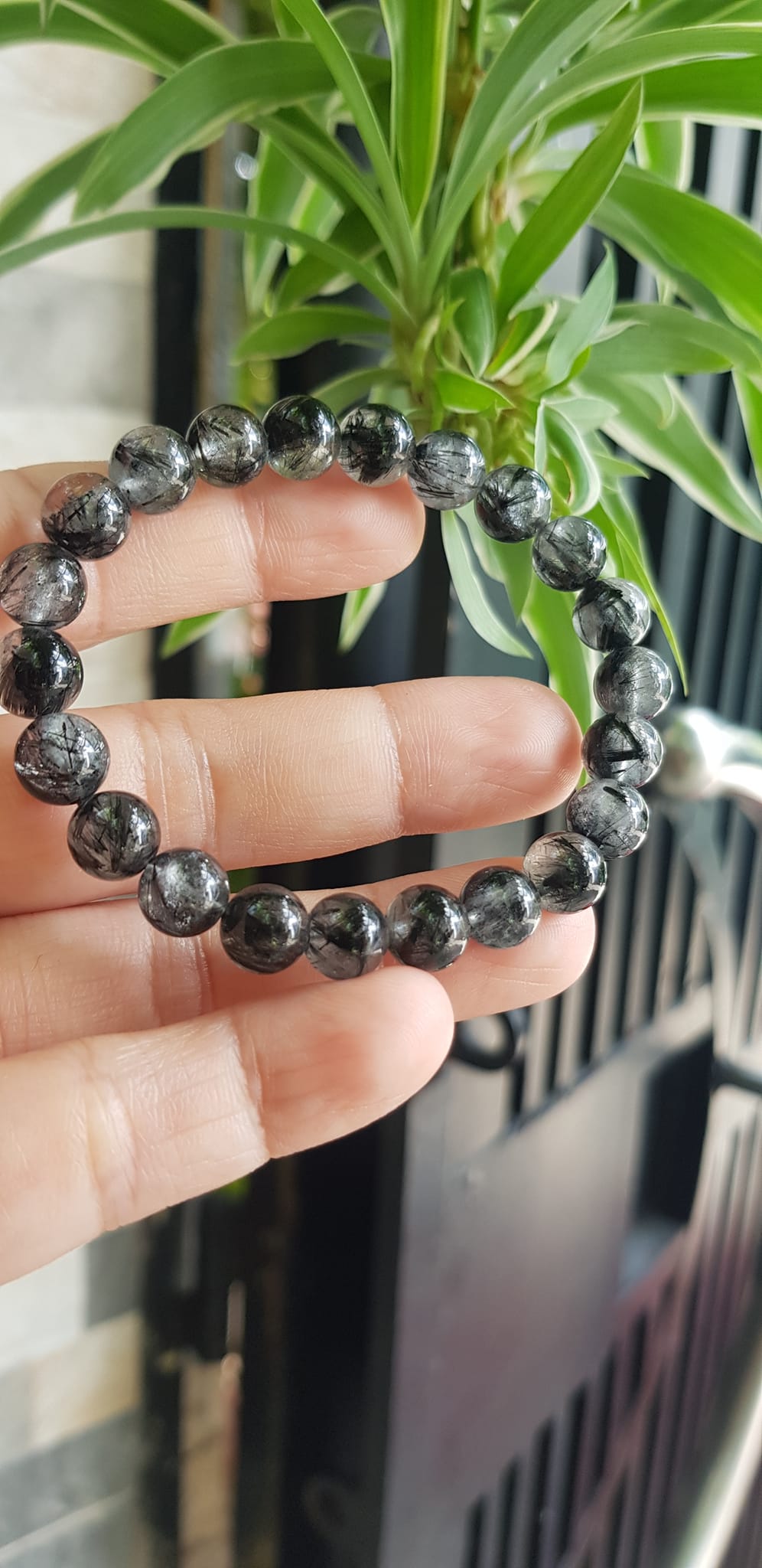 Vòng Tay Phong Thủy THẠCH ANH TÓC ĐEN cho Mệnh Mộc - Thủy