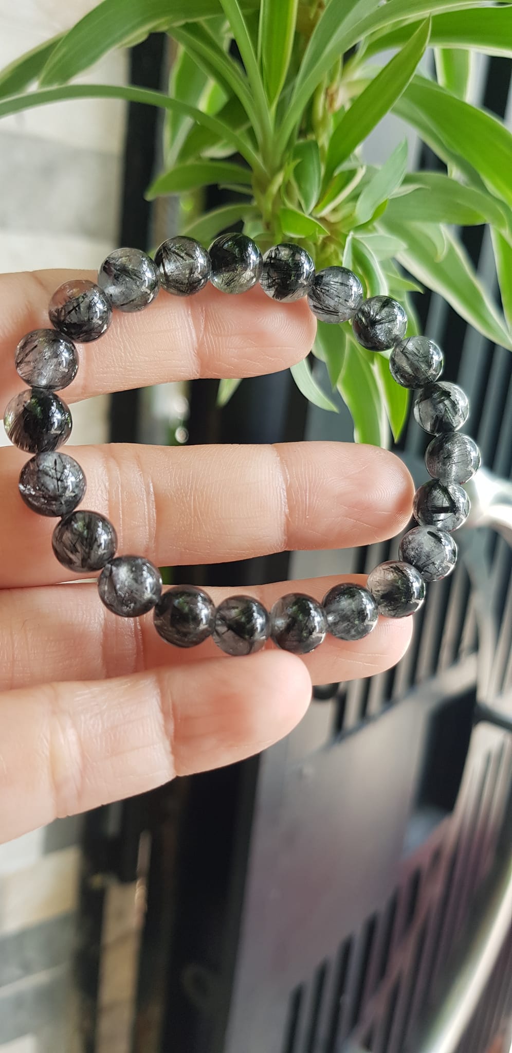Vòng tay thạch anh tóc đen tự nhiên nữ size hạt 8mm
