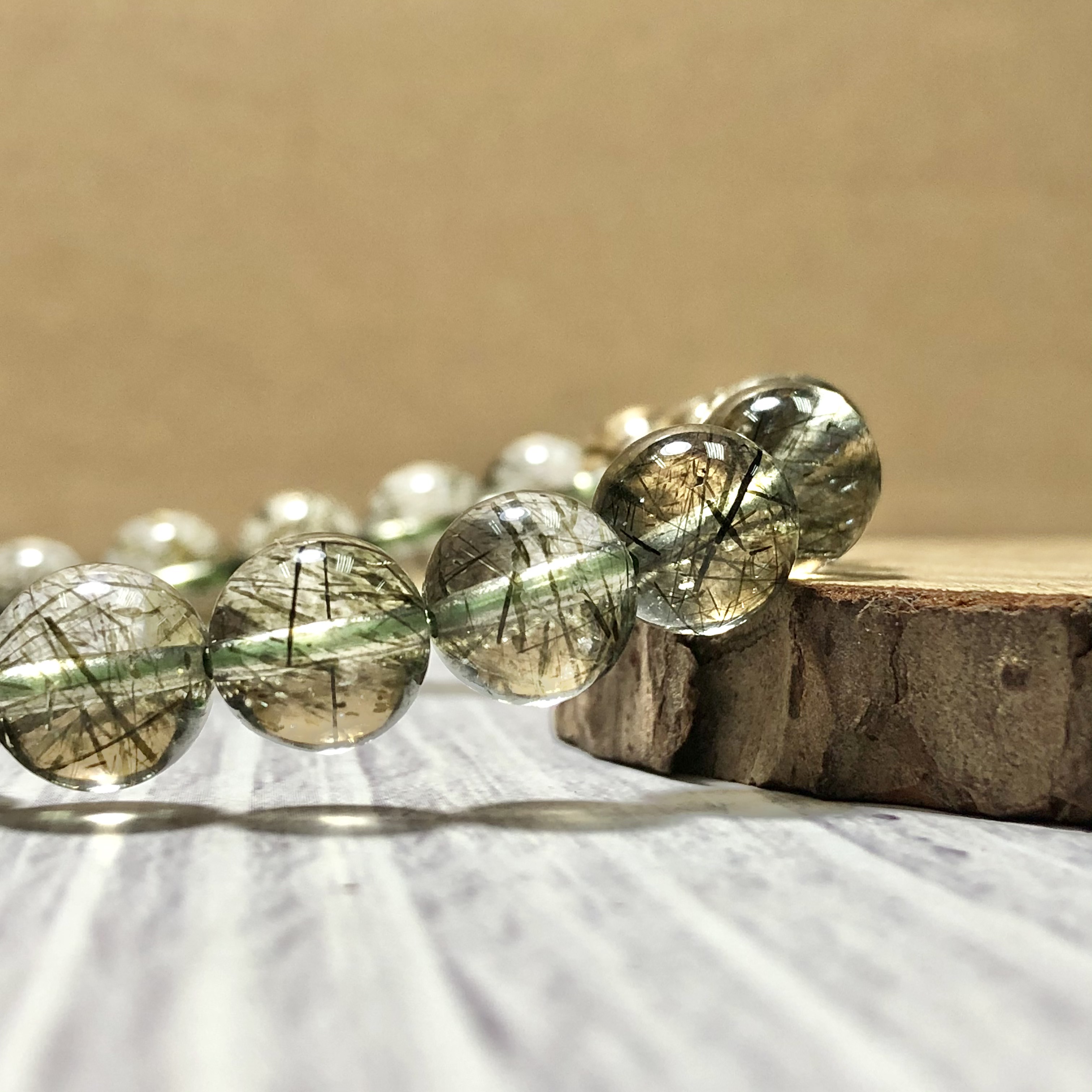 Vòng đá Thạch Anh Tóc xanh 15mm chuẩn 6A - NSBGR05S15