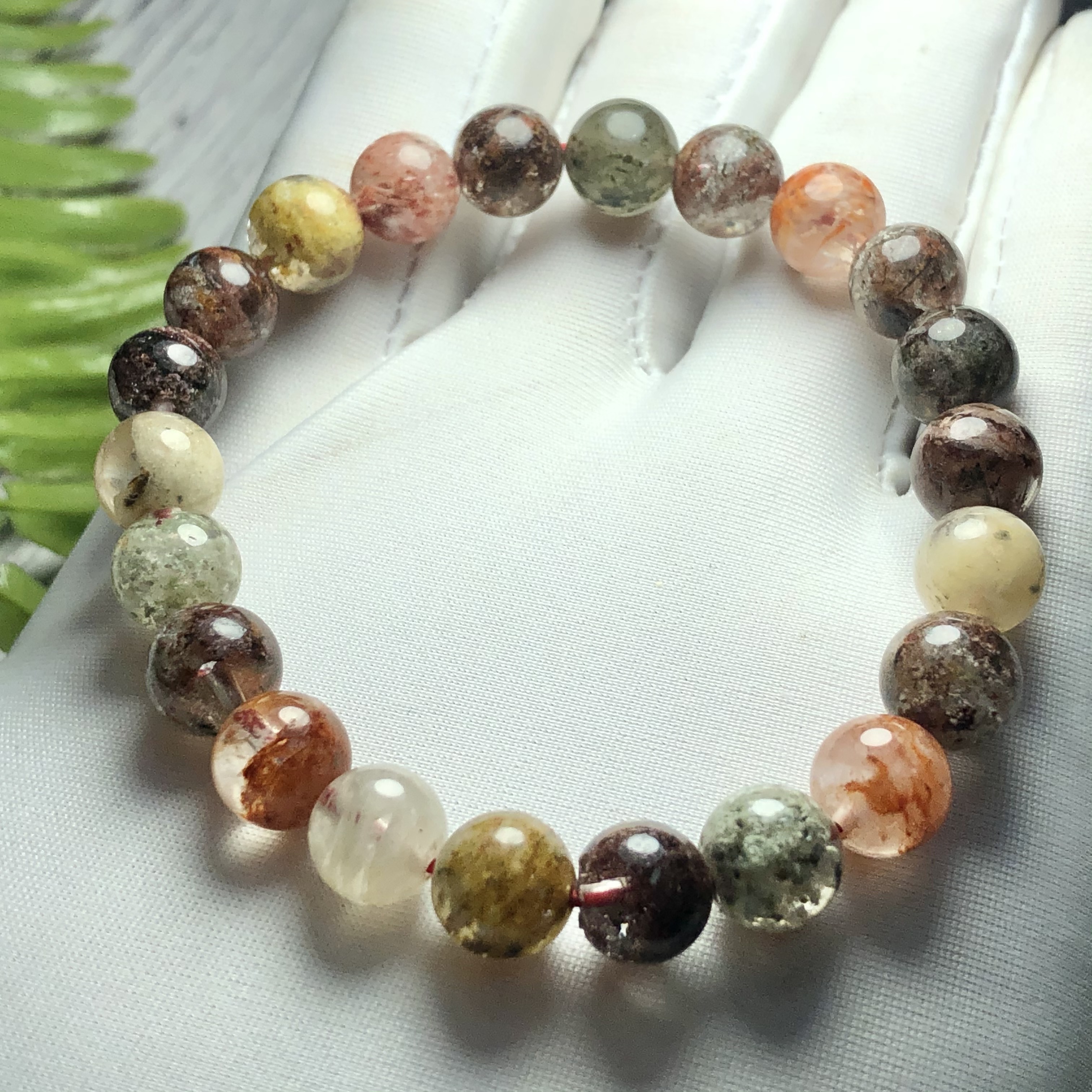 Vòng tay Thạch Anh Ưu Linh hoa 08mm cao cấp chuẩn 4A - Chất liệu: Thạch Anh Uu Linh tự nhiên. - Màu sắc: hỗn hợp tự nhiên (không qua xử lý). - Kích thước: 08mm - Kiểu dáng: vòng hạt tròn
