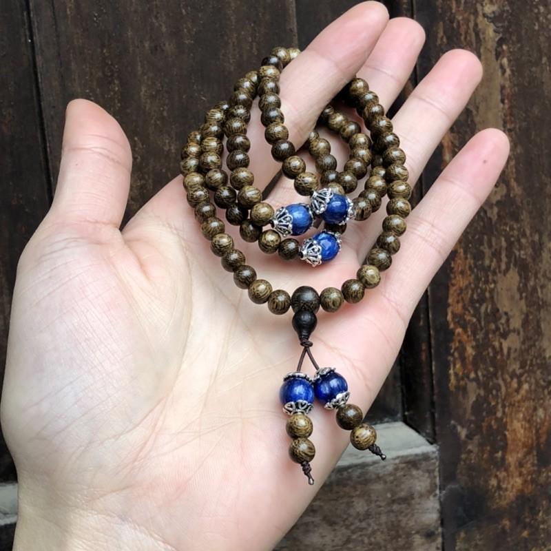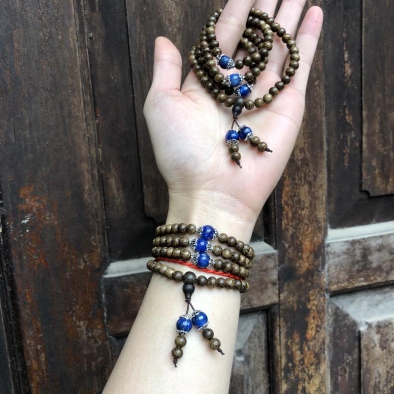 ✨Vòng Tay Trầm Hương phối Đá Xanh Kyanite cùng charm bạc thái - bình an, may mắn, tài lộc