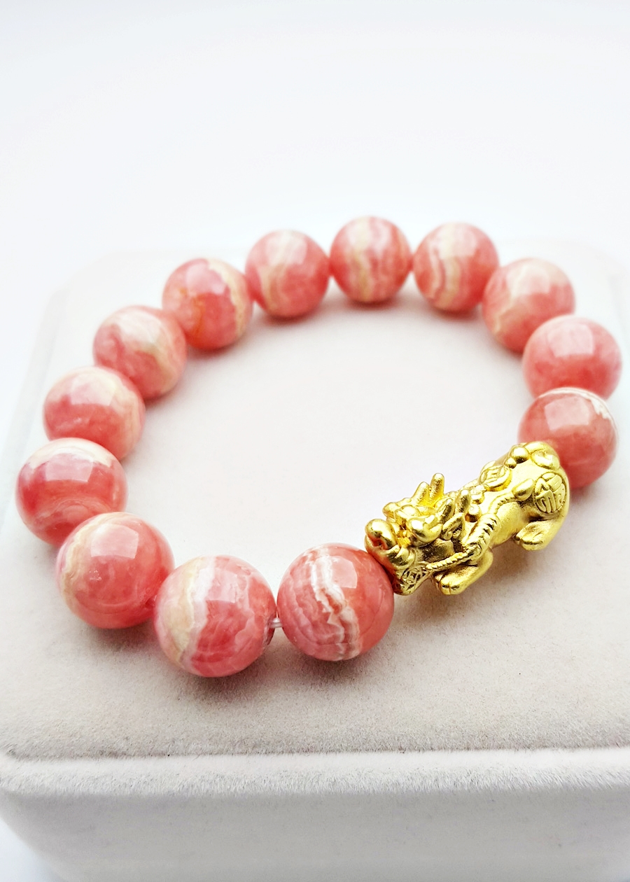 ✨ Vòng Tay Tỳ Hưu Đá Đào Hoa Rhodochrosite Tự Nhiên 14mm