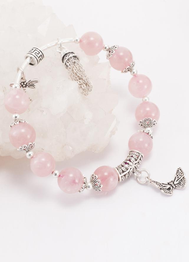 Vòng thạch anh hồng Aaa phối charm chuông bạc (8mm) Ngọc Quý Gemstones phù hợp với những người mạng Hoả và mạng Thổ.