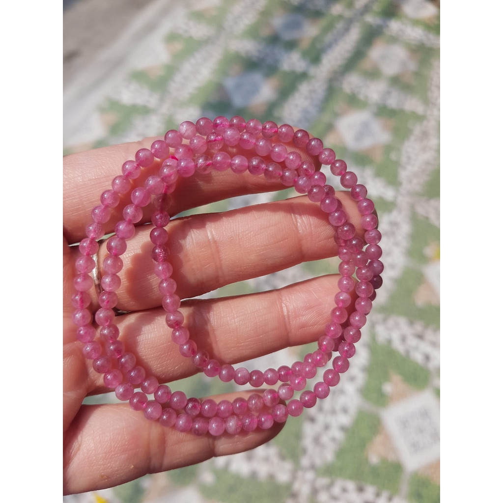 ✨Vòng Tourmaline hồng tự nhiên quấn 3 vòng tay đẹp Size hạt 4mm đeo kiểu rất xinh xắn Chuẩn hợp nữ mệnh Hỏa và mệnh Thổ ạ