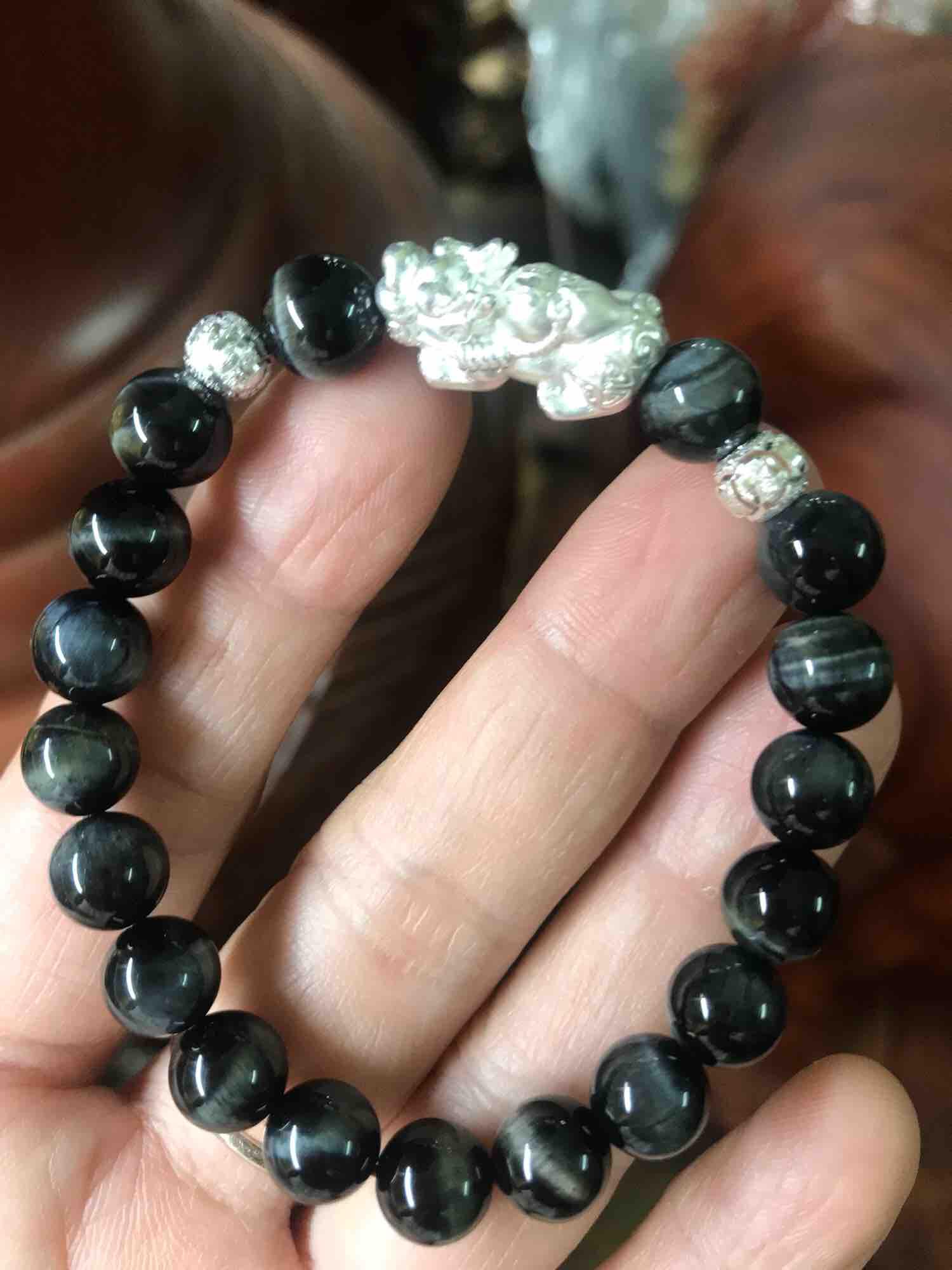 ✨VÒNG TỲ HƯU HỒ LÔ BẠC 8MM ĐÁ MẮT HỔ ĐEN XANH NỮ MỆNH THỦY MỘC ĐÁ THIÊN NHIÊN