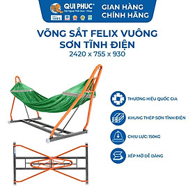 ✨Võng Xếp Vuông FELIX Qui Phúc – Khung Sắt Sơn Tĩnh Điện, Gấp Gọn, Chịu Tải 150Kg
