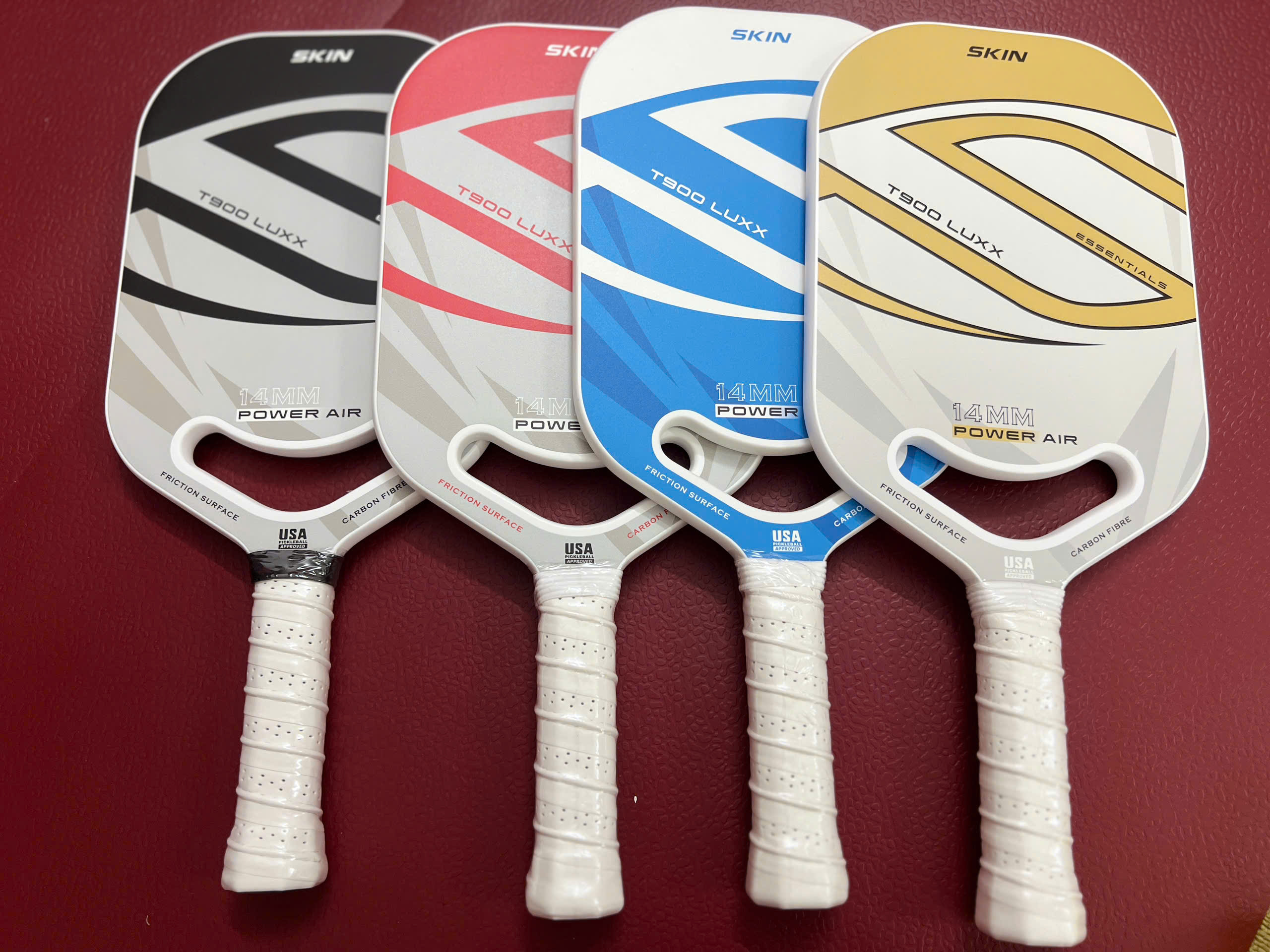 Thông tin vợt Pickleball Skin T900 Luxx Chất liệu: Carbon T900 Màu sắc: đen, đỏ, xanh dương, vàng Trọng lượng: 210g ± 10g Kích thước vợt: 42 x 18.5 x 13 (Dài x Rộng x