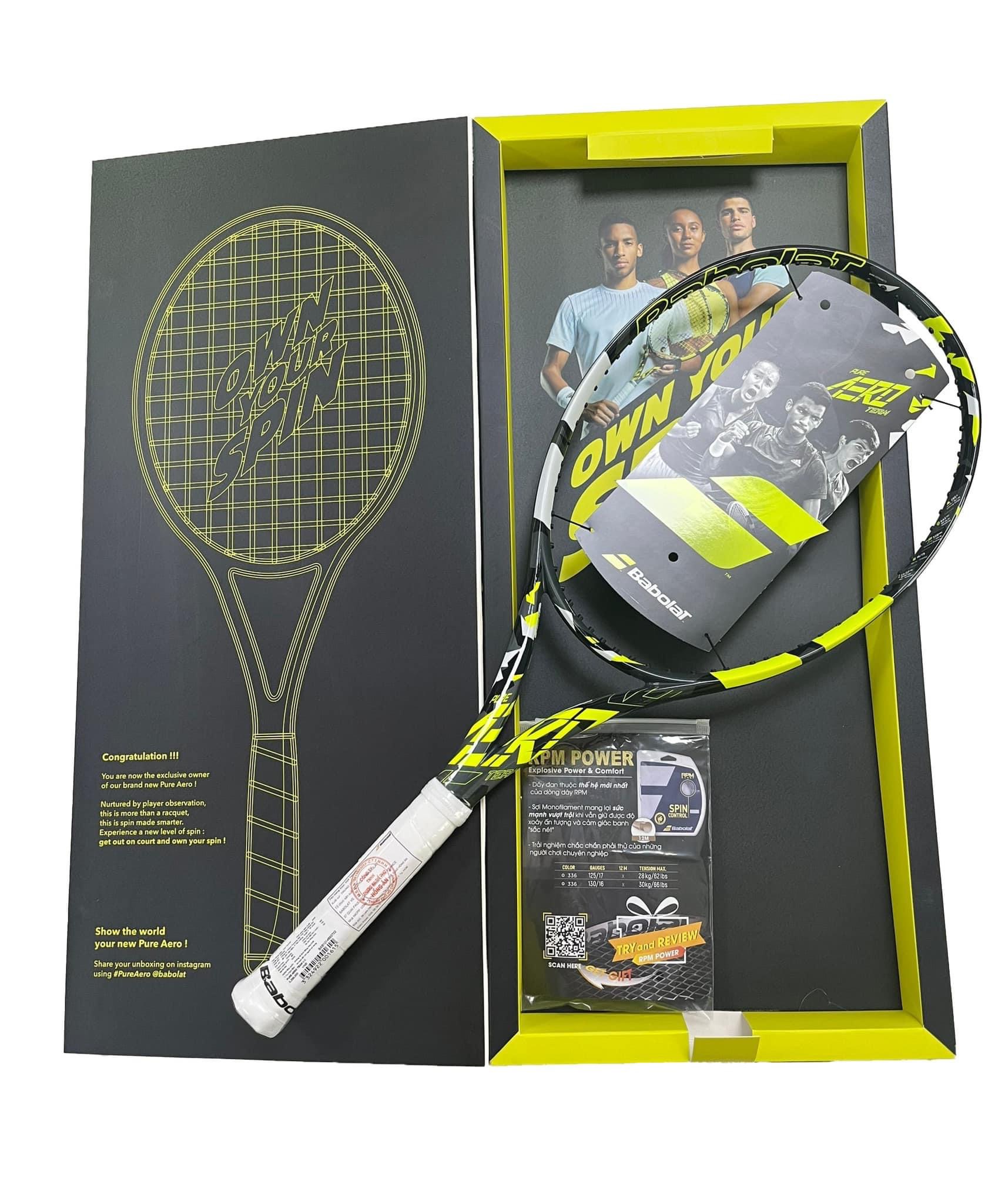 Vợt ALCARAZ ! Tay vợt tuổi teen vừa vô địch US Open 2022, vừa lên ngôi số 1 ATP.  Cây vợt mà Alcaraz sử dụng trước kia là Pure Aero VS , từ US OPEN 2022 anh chuyển qua sử dụng khung vợt PURE AERO 2023 mới.   Thiết kế của PURE AERO 2023 giữ nguyên những điểm mạnh vốn có của dòng PURE AERO là nhiều vòng xoáy (siêu SPIN) và bố sung thêm nhiều công nghệ mới từ Babolat để tăng cường nhiều sức mạnh hơn về Kiểm soát bóng (Control), Sức mạnh Mạnh bóng (Power) và sự linh hoạt khi có thể chơi thoải mái từ trạng thái tấn công sang phòng ngự trên mặt sân.  Một phiên bản nâng cấp đáng giá !  PURE AERO 285 gram dành cho các tay thích chơi sức mạnh, nhiều vòng quay cùng sự linh hoạt trên khắp mặt sân. Thông số chi tiết : Trọng lượng không căng dây : 285 gram Mặt vợt : 100 inch  Chiều dài tiêu cự : 27 inch  Mật độ lưới : 16 x 19 Độ cân bằng : 4HL đã bao gồm dây - không hỗ trợ Trọng lượng xoay : 322 Độ cứng khung vợt : 65 Kích thước khung vợt : 23mm / 26mm / 23mm  Lực căng khuyến cáo : 23 - 27kg