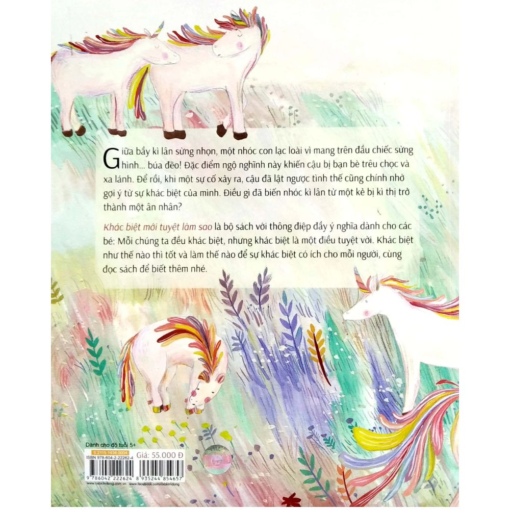 Khác biệt mới tuyệt làm sao là bộ sách với thông điệp đầy ý nghĩa dành cho các bé. Mỗi chúng ta đều khác biệt, nhưng khác biệt là một điều tuyệt vời. Khác biệt như thế nào thì tốt và làm thế nào để sự khác biệt có ích cho mỗi người, cùng đọc sách để biết thêm nhé.
