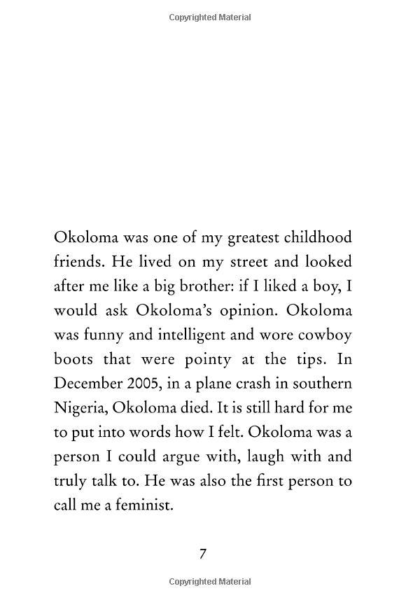 In this personal, eloquently-argued essay--adapted from the much-admired TEDx talk of the same name--Chimamanda Ngozi Adichie offers readers a unique definition of feminism for the twenty-first century, one rooted in inclusion and awareness. Drawing extensively on her own experiences and her deep understanding of the often masked realities of sexual politics, here is one remarkable author's exploration of what it means to be a woman now--and an of-the-moment rallying cry for why we should all be feminists.