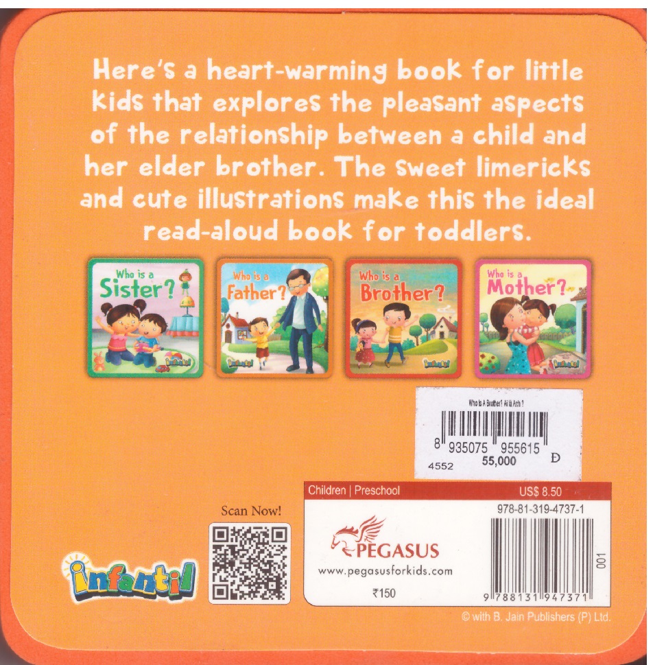 About the Book: Who is a Brother? - Foam Book Heres a heart-warming book for little kids that explores the pleasant aspects of the relationship between a child and elder brother, the sweet Limericks and