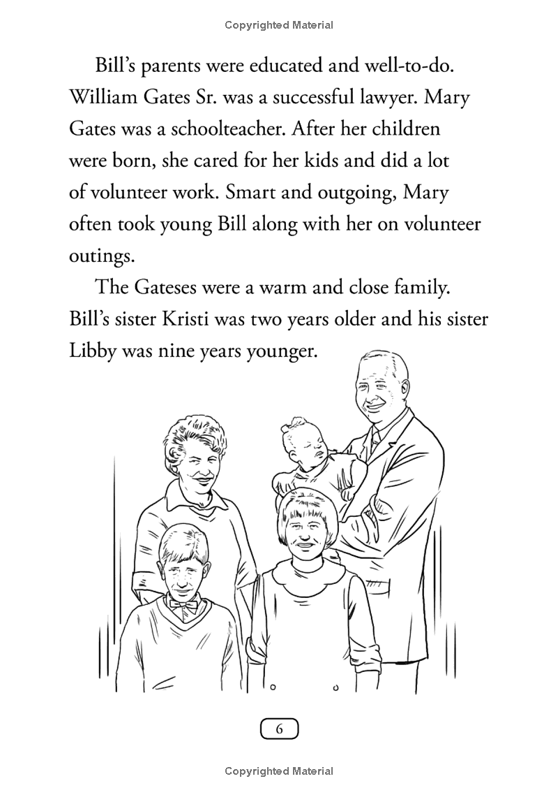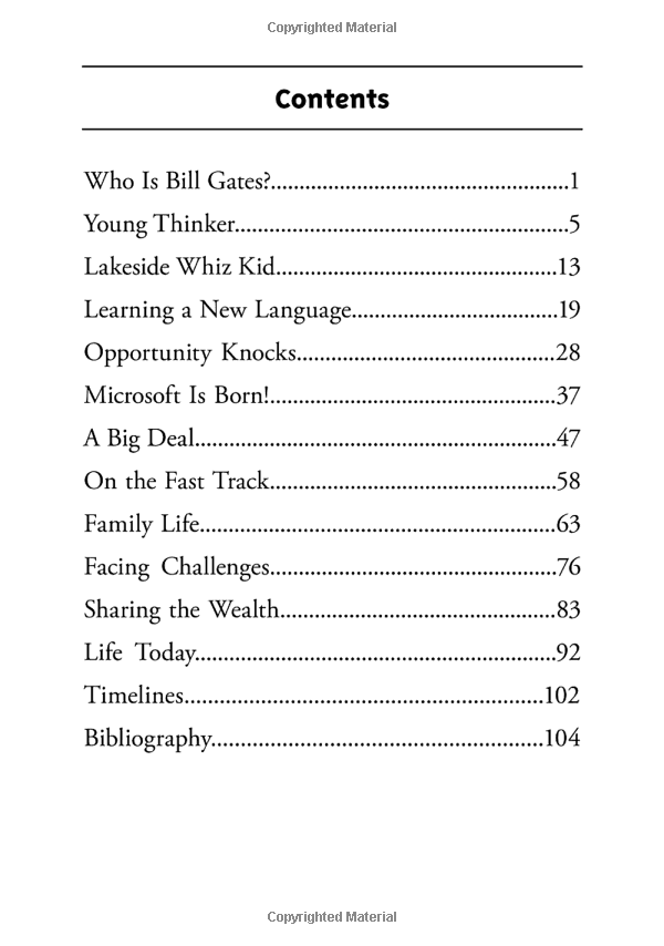 Bill Gates, born in Seattle, Washington, in 1955, is an American business magnate, investor, philanthropist, and author. In this "Who W "biography, children will learn of Gates' childhood passion for computer technology, which led him to revolutionize personal computers. Through the success of his now-world-famous software company, Microsoft, Bill Gates became one of the wealthiest philanthropists in history.This fascinating story of a child technology genius is sure to captivate any audience!