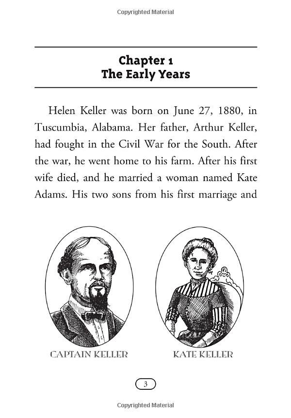A biography of the woman who, with the assistance of her devoted teacher Annie Sullivan, achieved success and fame despite being blind and deaf.