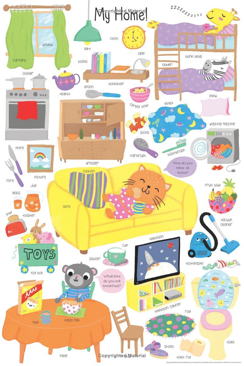 Packed with bright, engaging illustrations and lots of labels, little ones will love exploring familiar objects around the house, room by room. With loads to spot and talk about on every page, children are encouraged to practise their vocabulary skills as they learn new words about everyday topics. Fun questions throughout explore numbers, colours and shapes.