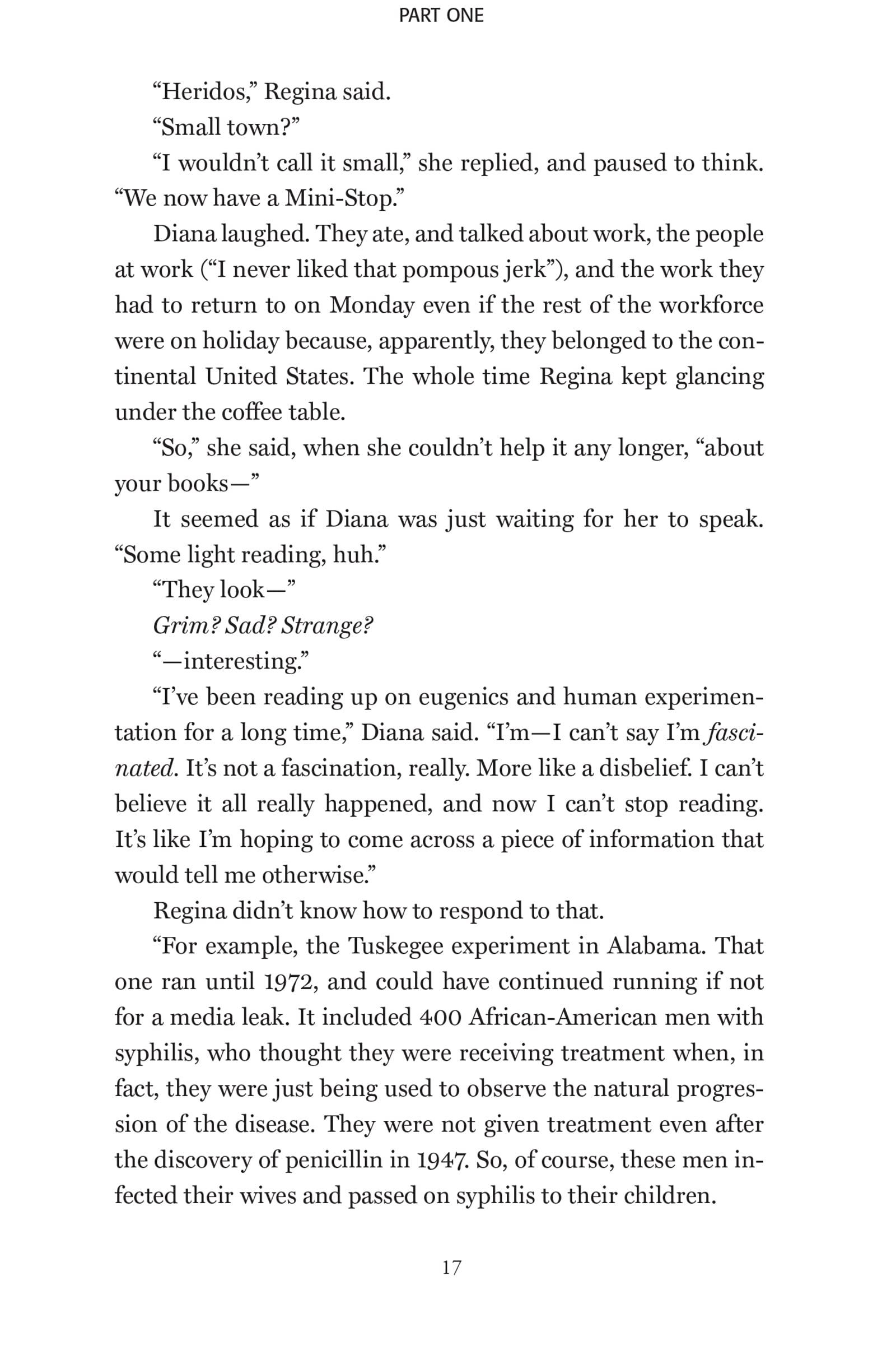 On Thursday, Regina finds a folded piece of paper In her bag. In Diana's handwriting are two names and a strange map that will send Regina back to her hometown. Here, in her quest to find Diana, she encounters rumors of genetic experiments, stumbles upon a strange facility that no one seems to know about, finds herself in places that don't exist, and discovers that people are not who they seem to be. And the biggest question in the bizarre chain of events is not what, or how, but why?