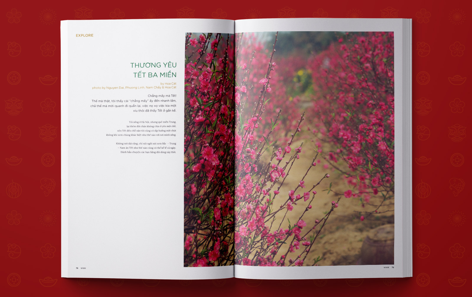 Với số thứ hai, tạp chí WOWWEEKEND sẽ một lần nữa đưa các bạn độc giả đến với những trải nghiệm, những cung bậc cảm xúc của mùa Xuân trải dài khắp mọi miền của Tổ quốc từ Bắc vào Nam. Mở đầu chuyến hành trình là Lễ hội Đền Thái Vi ở Ninh Bình cho đến đến Làng chài Bình Lập những ngày cận Tết, chúng tôi mong muốn WOWWEEKEND sẽ trở thành con tàu để đưa các độc giả được hòa mình và trải nghiệm không khí đón Xuân ở khắp mọi miền của đất nước hình chữ “S".