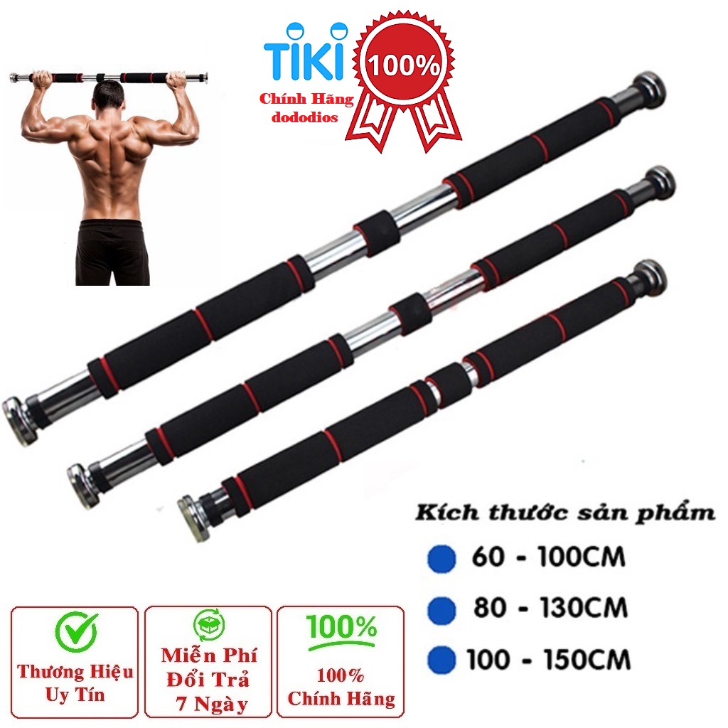 - Chất liệu: Inox HƯỚNG DẪN CHỌN XÀ [RẤT QUAN TRỌNG] ️ Chọn xà đơn dựa vào khoảng cách xà lắp đặt để CHỊU TẢI TỐT NHẤT ! ️KHOẢNG CÁCH từ 65cm – 85cm: Chọn Xà Đơn cỡ 60-100cm (mút dài hay mút ngắn đều ok) ️KHOẢNG CÁCH từ 85cm – 105cm: Chọn Xà Đơn cỡ 80-130cm (mút dài hay mút ngắn đều ok) ️KHOẢNG CÁCH từ 105cm - 135cm: Chọn Xà Đơn cỡ 100-150cm (mút dài hay mút ngắn đều ok) HƯỚNG DẪN LẮP ĐẶT: ️Dựa vào hướng dẫn chọn xà đơn trên để về lắp đặt Nhanh – chịu lực tốt bạn nhé. ️Bước 1: Xoáy 2 đầu thanh xà đơn theo ren ra ướm vào khu vực lắp ️Bước 2: Đưa xà đơn lên vị trí lắp đặt, dùng tay vặn sao cho xà đơn ngày càng siết chặt vào tường qua 2 đầu mút ️Bước 3: [QUAN TRỌNG]: Dùng tay siết thật chặt tay cầm để lực vặn xà đơn khỏe nhất giúp thanh xà miết chặt vào tường. ️Bước 4: Đu thử nhẹ nhàng xem độ bám của xà đơn đã Ok chưa, chưa thì ta lặp lại bước 3. Ok rồi thì sử dụng thôi ak ️Bước 5: Sử dụng xà đơn: hãy lên xà đơn theo chiều vặn chặt xà đơn bạn nhé, để đảm bảo lúc bạn lên hít xà thì lực tay cầm của bạn là lực giúp xà mút chặt hơn vào bờ tường ! ️ Khi sử dụng xà đơn lâu ngày hãy thử bước 4 trước bạn nhé. Sau khi bước 4 an toàn thì tập như bước 5 là ok ! Ưu điểm: ️Dễ dàng tháo lắp và sử dụng. ️Sử dụng được nhiều khu vực: bờ tường, cửa lối ra và ️Hít xà đơn tập thể dục tại nhà nâng cao sức khỏe ngay tại nhà. ️Xà đơn dễ tháo lắp, chịu tải lớn lên tới 100 kg.