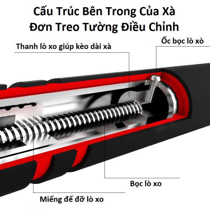 - Xà Đơn Treo Tường Có Chống Xoay TT - Mart (60 -110 cm) đa năng được thiết kế nhỏ gọn, chắc chắn và không cần khoan đục hay bắt vít khi sử dụng. - Cấu
