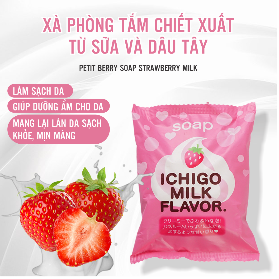 Xà Phòng Tắm Petit Berry Soap Strawberrry Milk Dưỡng Da Trắng Sáng Chiết Xuất Từ Sữa Và Dâu Tây (80g) Quy cách : 1 gói 1 cục