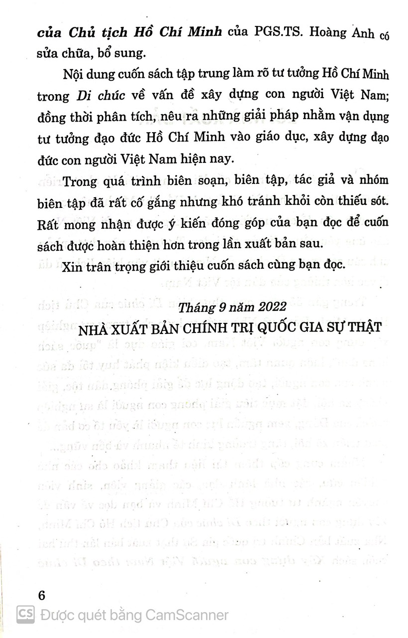 Tác giả: Năm xuất bản: Số trang: Nội dung cuốn sách tập trung làm rõ tư tưởng Hồ Chí Minh trong Di chúc về vấn đề xây dựng con người Việt Nam; đồng thời phân tích, nêu ra nhưỡng giải pháp nhằm vận dụng tư tưởng, đạo đức Hồ Chí Minh vào giáo dục, xây dựng đạo đức con người Việt Nam hiện nay.