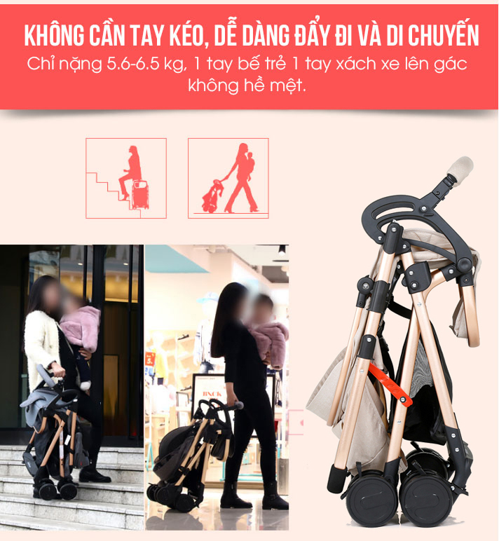 Chất liệu hợp kim siêu nhẹ Gấp gọn dễ dàng, tiện lợi sử dụng, mang đi du lị Sử dụng từ Sơ sinh đến 3 tuổi Điều chỉnh lưng ghế dễ dàng với nhiều góc