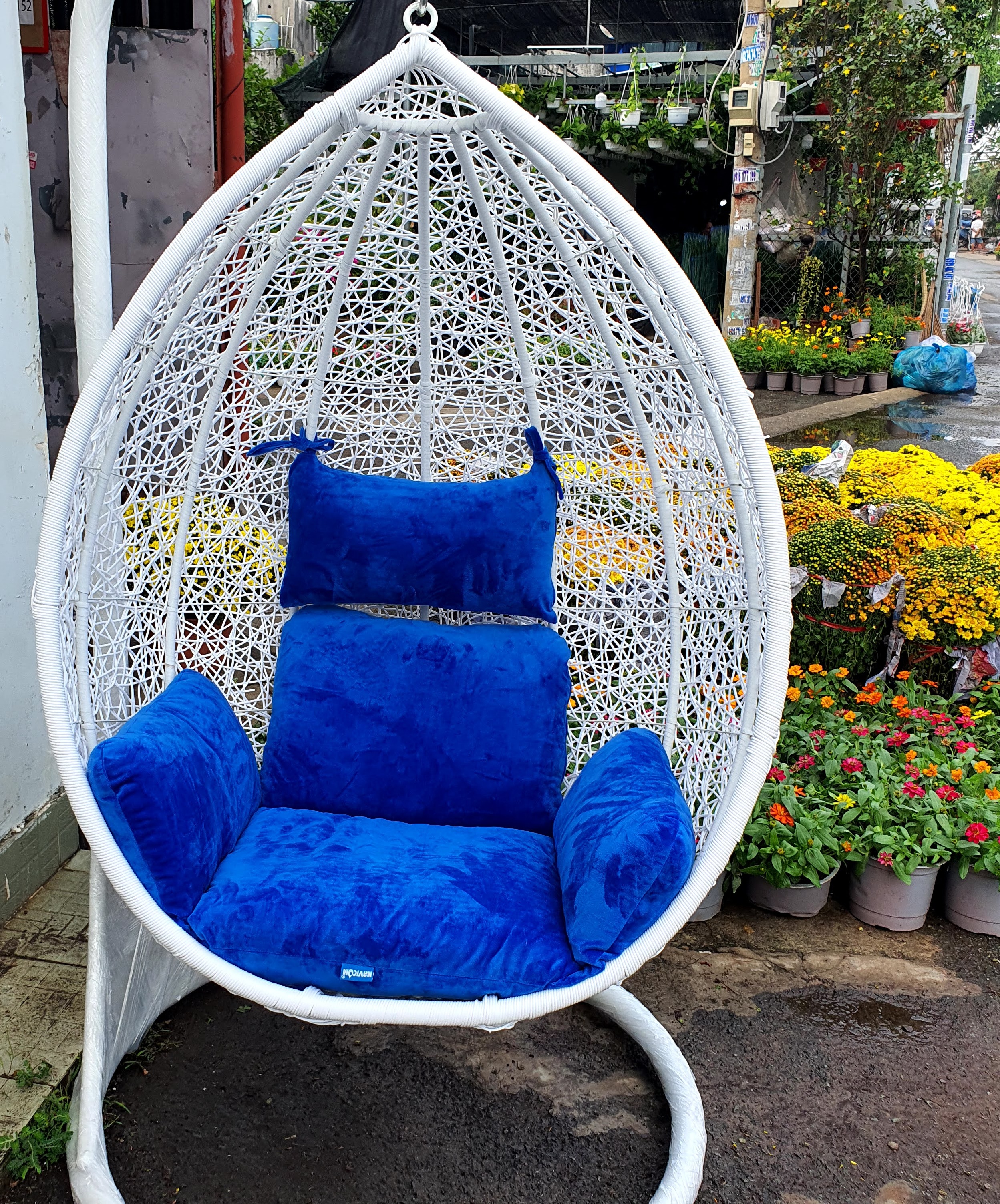 Bộ sản phẩm gồm : + Chân đế xích đu + Cần treo + lồng xích đu + Nệm xích đu chất lượng, được giật nút tỉ mỉ, chất liệu vải bố hoặc nhung màu