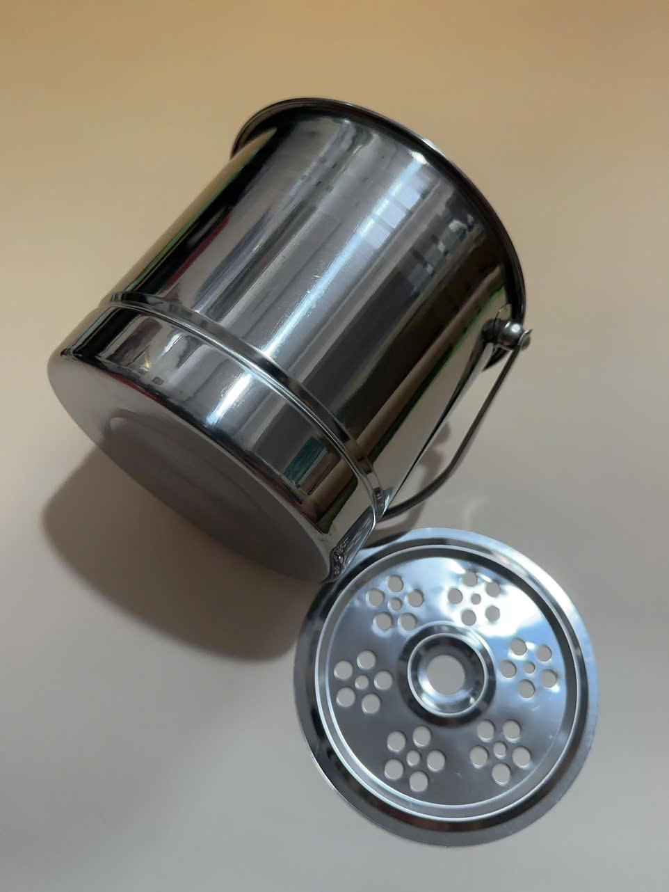 Sản phẩm được làm hoàn toàn bằng inox, có độ bóng sáng tự nhiên, không hoen gỉ. Xô có quai để tiện cho việc cầm nắm và dễ dàng xách di chuyển