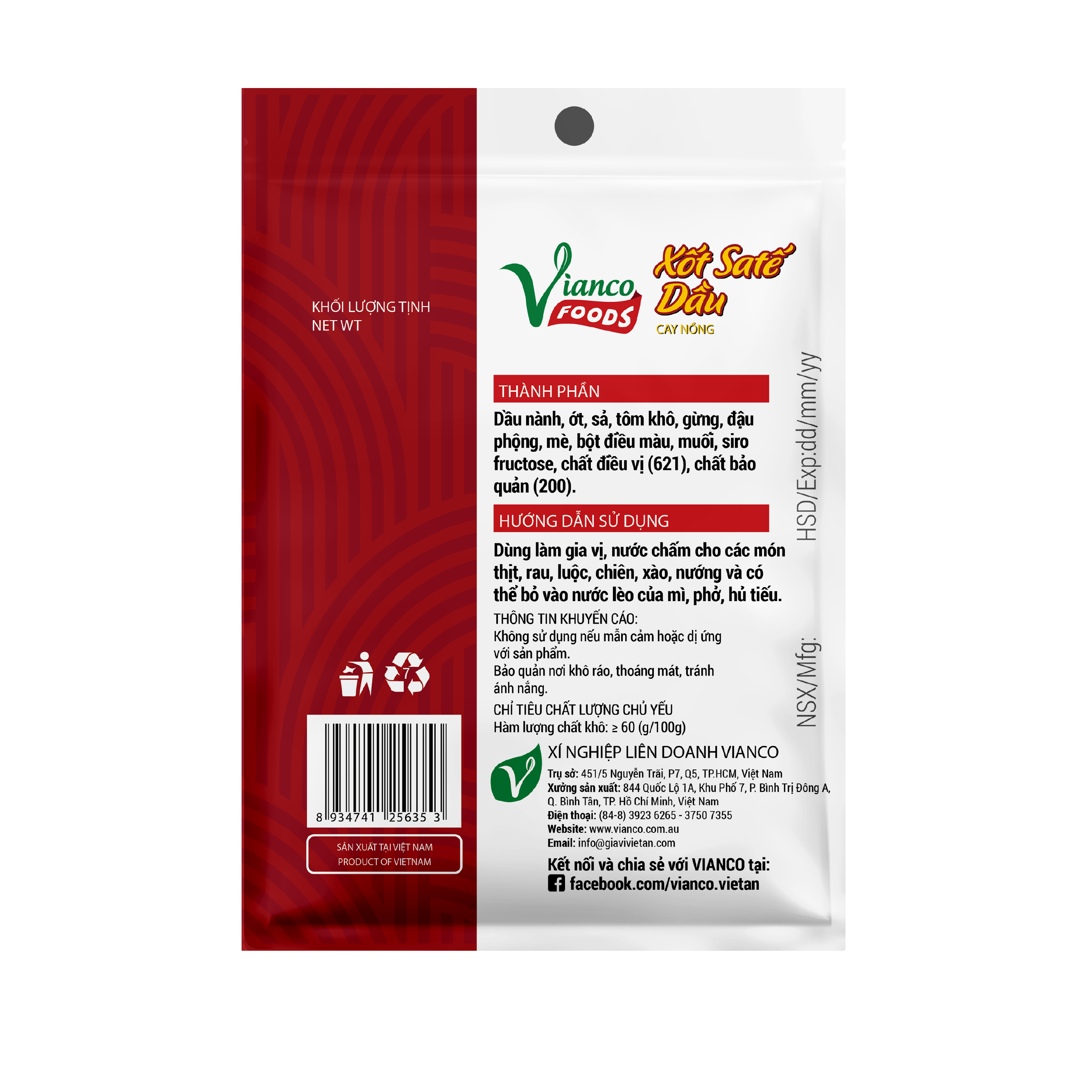 Xốt sa tế dầu ViancoFoods Việt Ấn là sản phẩm được ưa chuộng với thành phần nguyên liệu tươi, hoàn toàn từ thiên nhiên. Đặc biệt xốt sa tế dầu ViancoFoods có đầy đủ các
