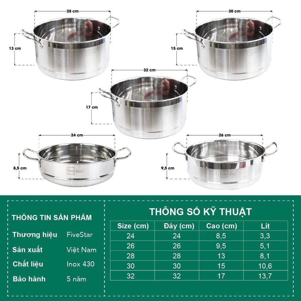 ✨Xửng hấp inox 430 FiveStar Standard 2 quai không nắp ( 24cm / 26cm / 28cm / 30cm / 32cm ), tặng 1 vá canh