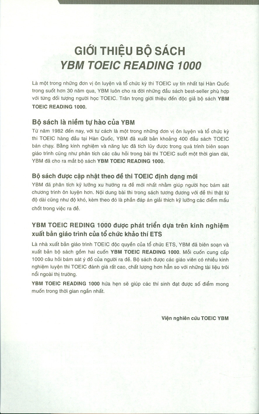 ✨YBM Toeic Reading 1000 - Vol 1 (Tái bản 2022)
