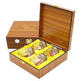 Hộp gỗ chữ nhật kích thước 31x22x8 (cm) Gồm 12 phần yến, mỗi phần 1,5 g + 12 gói đường phèn, mỗi gói 7 g Tặng kèm 12 hũ thủy tinh tiệt trùng dùng để